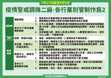 中央流行疫情指揮中心宣布明(27)日起全國疫情警戒調降為二級,室內外運動場館明日起至8月9日適度放寬,保齡球場及撞球場亦為這次放寬場館,為兼顧防疫安全及民眾運動需求,台中市政府運動局依據教育部體育署「競技及休閒運動場館業因應COVID-19防疫管理指引」適度放寬私人室內、外運動場館,游泳池則配合中央指引暫時關閉。