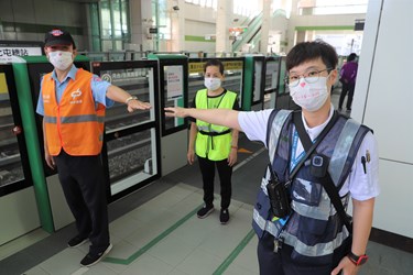 中捷公司表示,疫情警戒降級加上適逢暑假,民眾外出消費、休閒的頻率增加,捷運綠線沿線有多處百貨公司、大型賣場、知名景點,提醒民眾前往公共場所應保持社交距離,搭乘捷運請全程佩戴口罩。此外,中捷站務、車務、清潔及保全等第一線人員也全體佩戴「愛的距離」口罩,口罩上印著「1.5 X 1.5=2.25」及愛心圖案,成功引起旅客注意及好奇詢問,原來1.5公尺是室內社交距離,1.5公尺乘以1.5公尺即2.25平方公尺面積僅能容納1人。