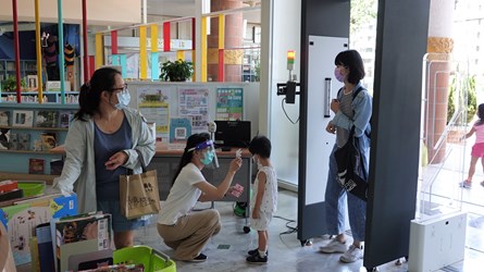 文化局表示,今日開放入館首日,一大早就有媽媽帶著孩子前往圖書館解書荒,直呼「終於可以入館選書、借書了!」。入館借書民眾也表示,圖書館的防疫措施做得不錯,孩子會自動拿著書到紫外線除菌機幫書本消毒,期待適度鬆綁期間能安心借閱書籍,讓孩子在暑假期間閱讀也能不中斷。