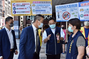 經濟發展局長張峯源昨(27)日率隊前往中友百貨美食街視察業者防疫措施執行狀況