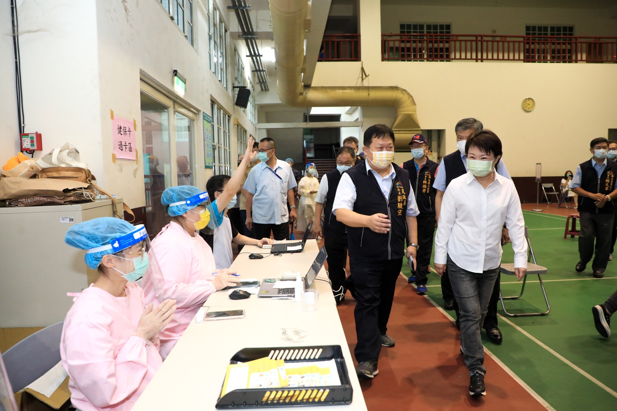 唐鳳系統第四輪疫苗預約接種,台中市政府自昨(5)日起兩日開設42處快打站、84場次,提供46220名疫苗預約民眾接種,補足醫療院所施打量能。市長盧秀燕今日前往北屯區東光國小快打站視察表示,盧碧颱風外圍環流為台中帶來雨量,市府評估情況後持續進行快打,希望預約民眾早打完早安心,現場秩序相當良好,感謝工作人員熱心為民眾服務。