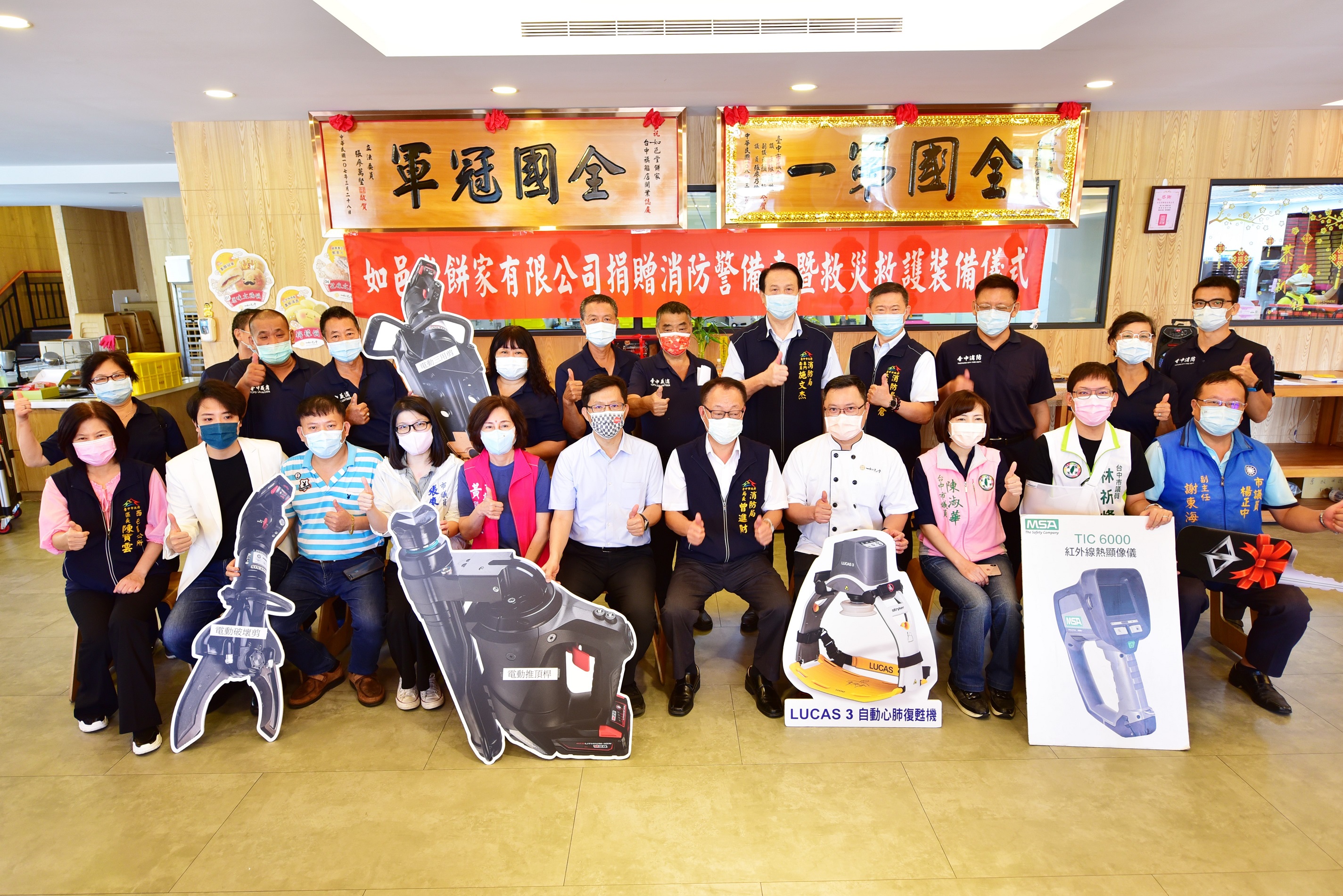 台中市著名伴手禮太陽餅比賽常勝軍「如邑堂」創始人林震東先生,有感於疫情期間消防人員救災、救護辛勞,捐贈市府消防局600萬元救災、救護裝備器材,今(28)日舉行捐贈儀式,消防局長曾進財代表受贈並回贈感謝狀,感謝林震東先生慷慨解囊,提昇消防單位戰力,保障消防人員執行勤務安全。