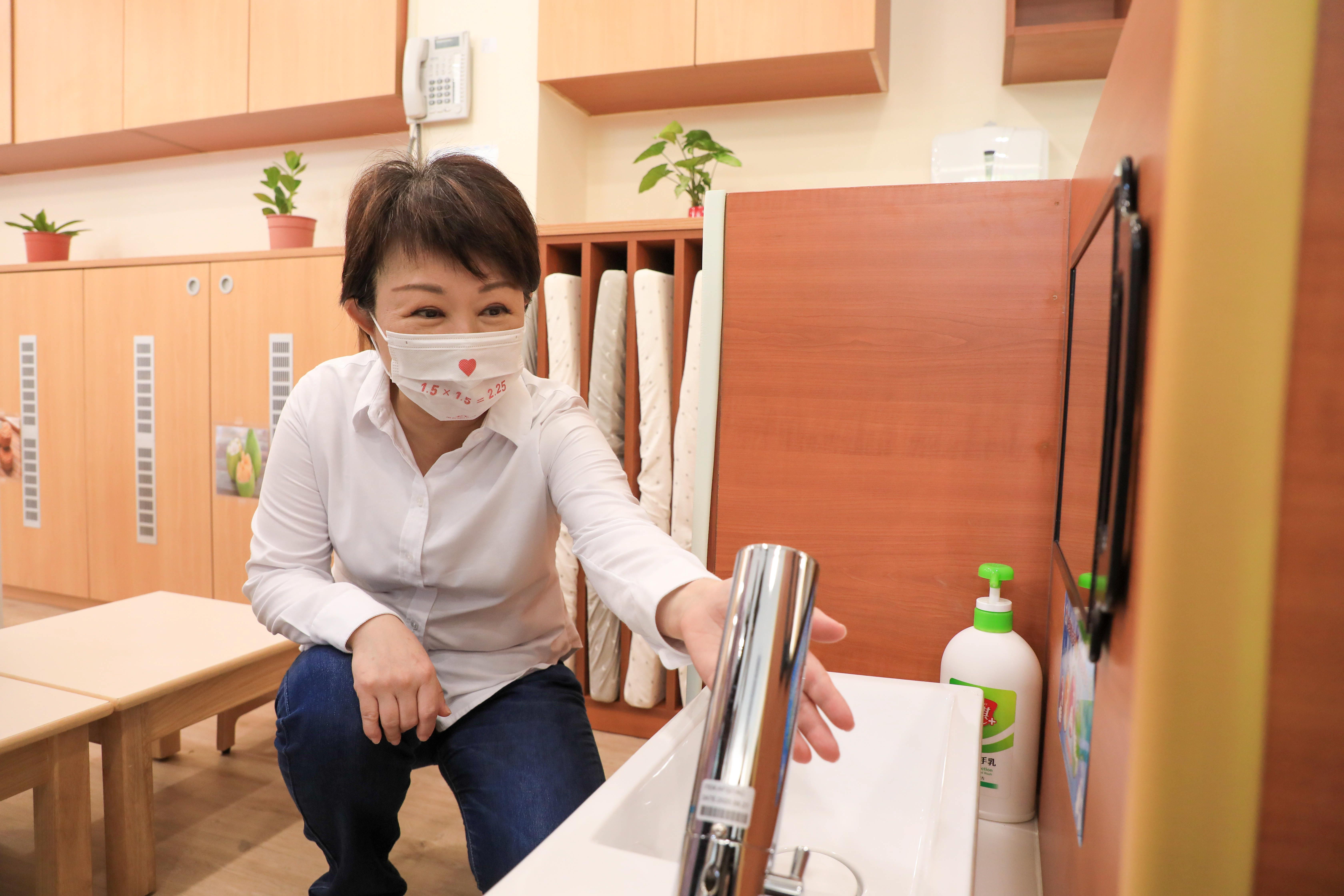 「東西都超迷你,好可愛!」盧市長參觀西勢社區托育空間時指出,過去公托公幼興建都要找地、編預算曠日廢時,所以市府善用閒置場域,以今日開幕的西勢社區公共托育家園而言,它過去是台中縣舊縣長官邸,現在提供出來設置長青元氣學堂及公共托育家園,台中市公托才能做得快又節省經費,提供廣闊舒適的空間。