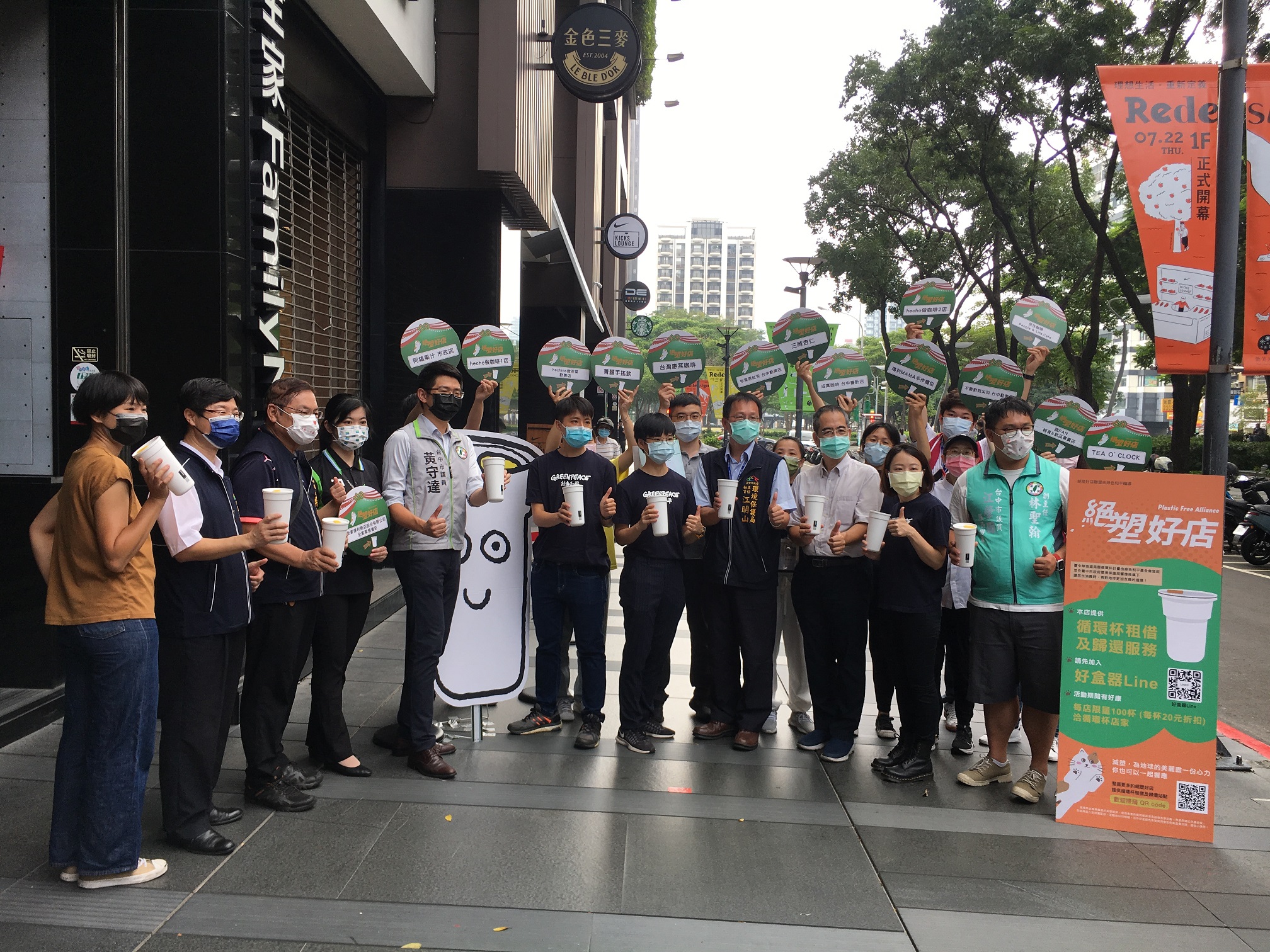 炎熱天氣,人手1杯清涼飲品消暑,加上今年受新冠肺炎疫情及限水影響,外帶、外送成為消費主流。為減少使用一次性飲料杯,台中市政府環保局與國際環保組織「綠色和平」合作推動「草悟道商圈循環杯計畫」,今(10)日起至11月30日止,民眾只要至台中市15家循環杯店家借用循環杯或自備環保杯消費買飲品,優惠每杯折扣20元,每店限量100杯,數量有限送完為止。