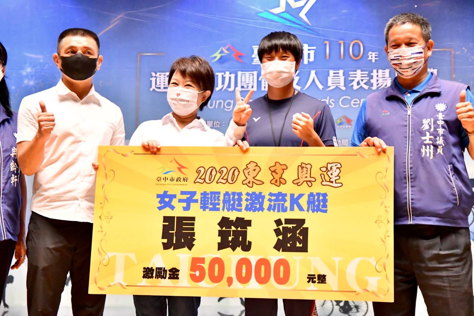 110年全國運動會輕艇賽事日前落幕,台中市輕艇隊勇奪5金8銀2銅,其中我國首位參加奧運輕艇賽事的國手張筑涵,摘下女子傳統舟艇500公尺、靜水障礙單人愛斯基摩艇金牌及輕艇競速單人愛斯基摩艇200公尺、500公尺四人愛斯基摩艇、傳統舟艇200公尺銀牌,個人在歷屆全運會已累積拿下9金7銀4銅,戰績輝煌,市長盧秀燕也於昨(10)日頒發激勵金恭賀。