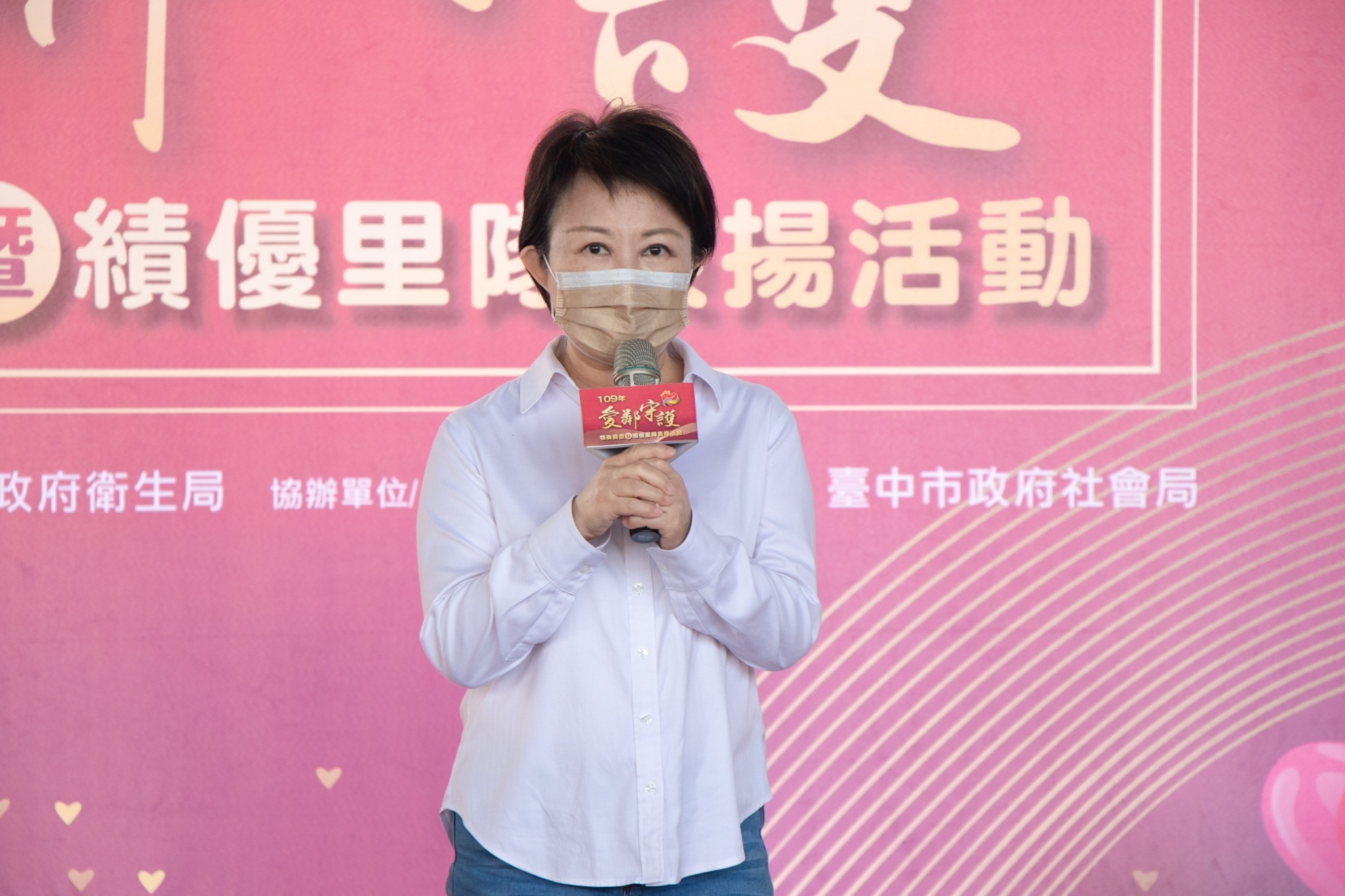 台中市愛鄰守護隊深入在地關懷社區長者及弱勢族群,疫情期間更堅守防疫前線,引導社區長輩至快打站接種疫苗,默默為社會付出,為向他們表達感謝,市長盧秀燕今(30)日公開表揚10隊愛鄰守護特殊貢獻里隊及81隊績優里隊,她表示,感謝鄰里為社區的奉獻,疫情期間更發揮了大大的功能,守護市民健康,是台中社區的守護神!