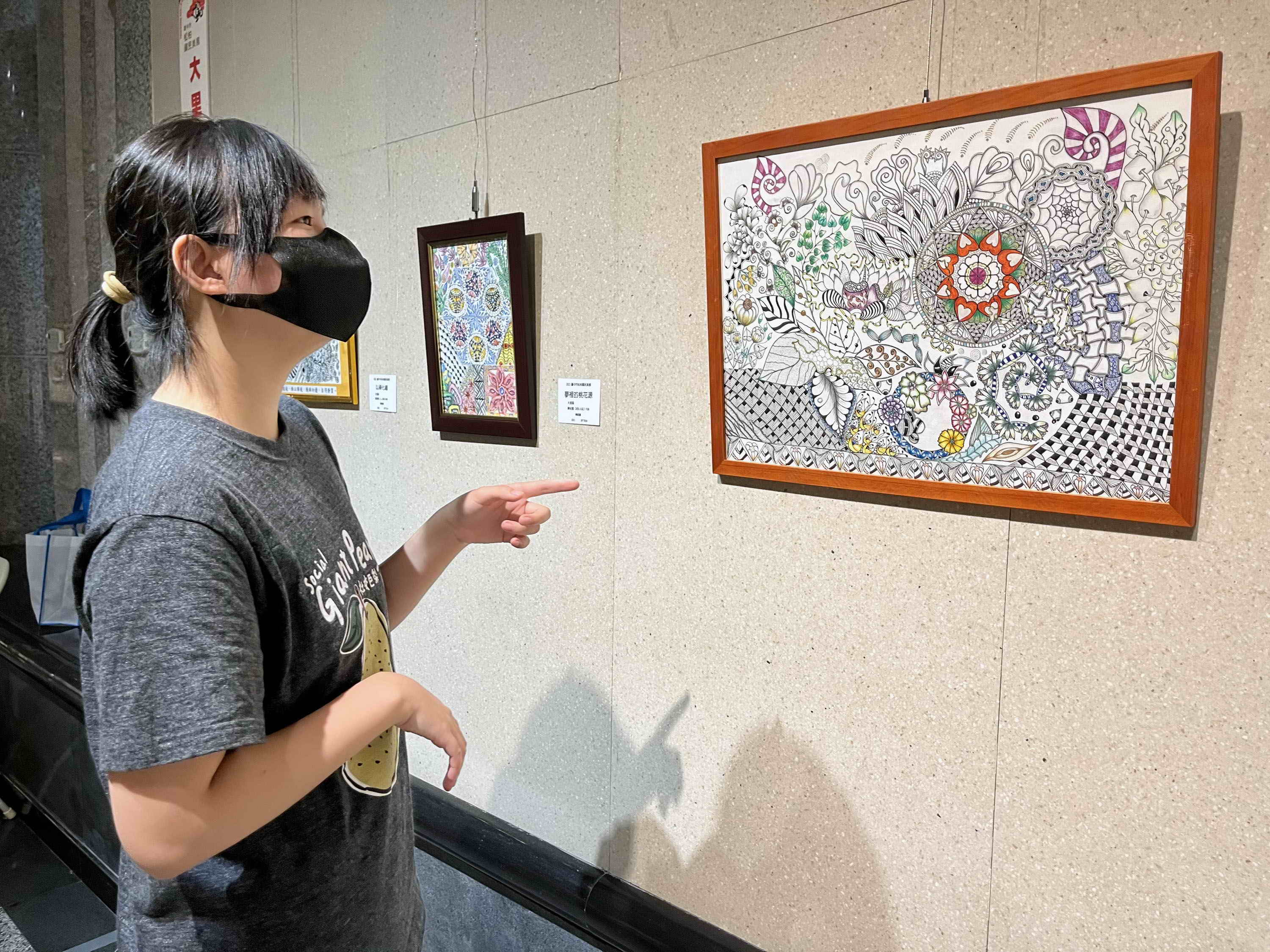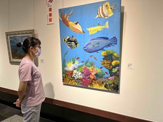 港區藝術中心進一步說明,此次參展者中最高齡的為96歲的歐蔡對及林郭愛女士。歐蔡對女士是梧棲知名餐飲集團「新天地」餐廳創辦人,她的油畫作品《海底世界》以鮮豔繽紛的油彩、布局均衡的構圖,呈現各種魚類優游於海底世界的有趣印象。