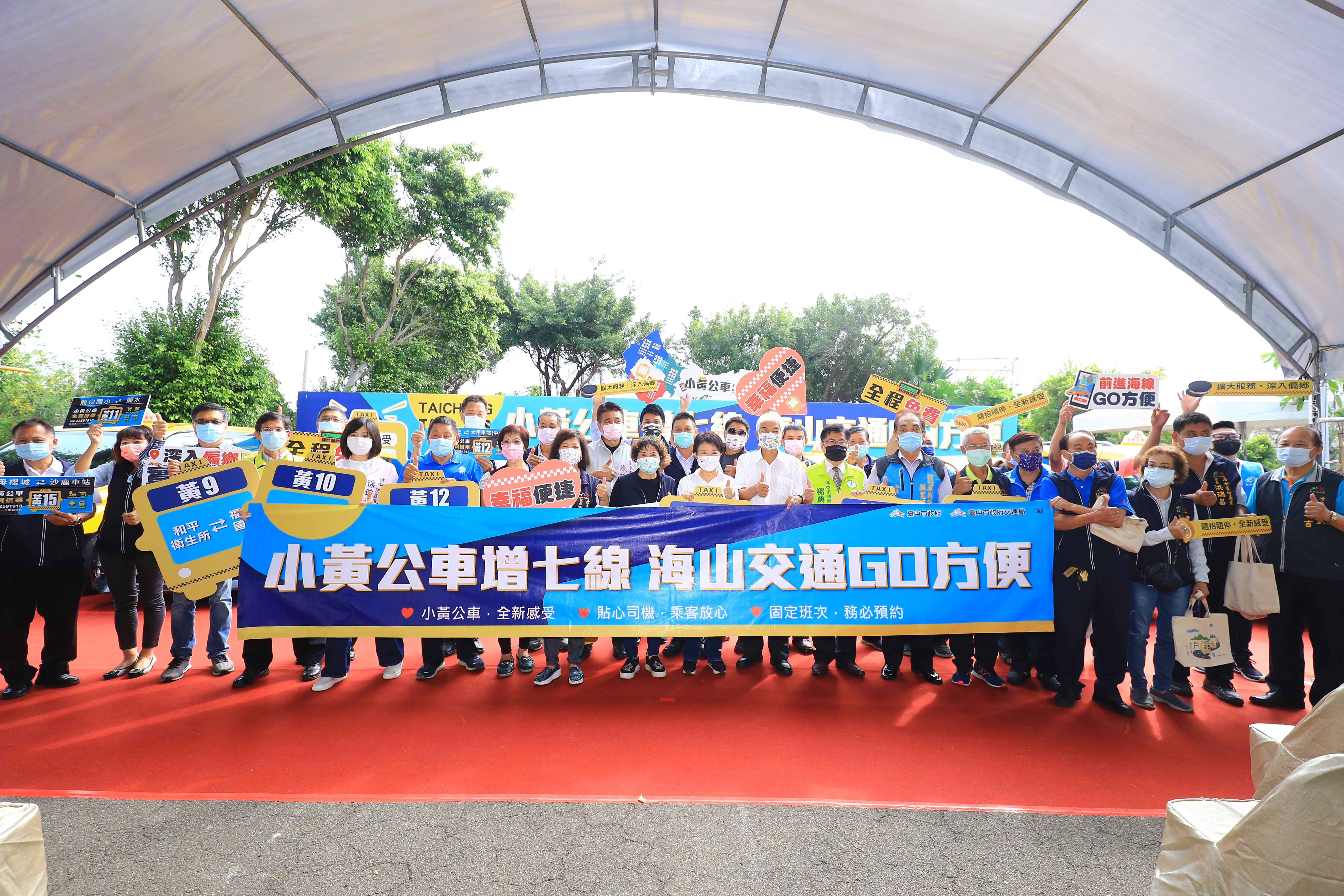 交通局今(15)日在清水運一運動公園前舉辦「小黃公車增七線 海山交通GO方便」記者會,盧市長表示,台中市積極推動小黃公車,原路線一共8條,原本海線沒有路線,今年新增7條,其中5條在海線,感謝議長張清照、副議長顏莉敏及議員們的支持,小黃公車上路以來受到市民歡迎,15路線服務遍布山、海、屯區,行經豐原、東勢、新社、太平、霧峰、烏日、和平、潭子、神岡、龍井、沙鹿、清水、大甲與大安等14個行政區103里,不斷擴大使用率,以預約方式提供服務,並提供民眾免費搭乘。
