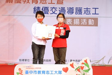 教育局今日舉辦「110年績優教育志工暨績優交通導護志工表揚活動」頒獎典禮,並表揚設置快打站的學校。盧市長表示,台中是有愛的地方,教育志工在孩子們上下學協助導護交通,讓孩子有安全回家的路,或在圖書館幫忙,或於孩子們打預防針時安撫、吃午餐時協助照料,今日頒獎感謝他們一年來的辛勞,謝謝大家長期以來守護孩子、協助學校。
