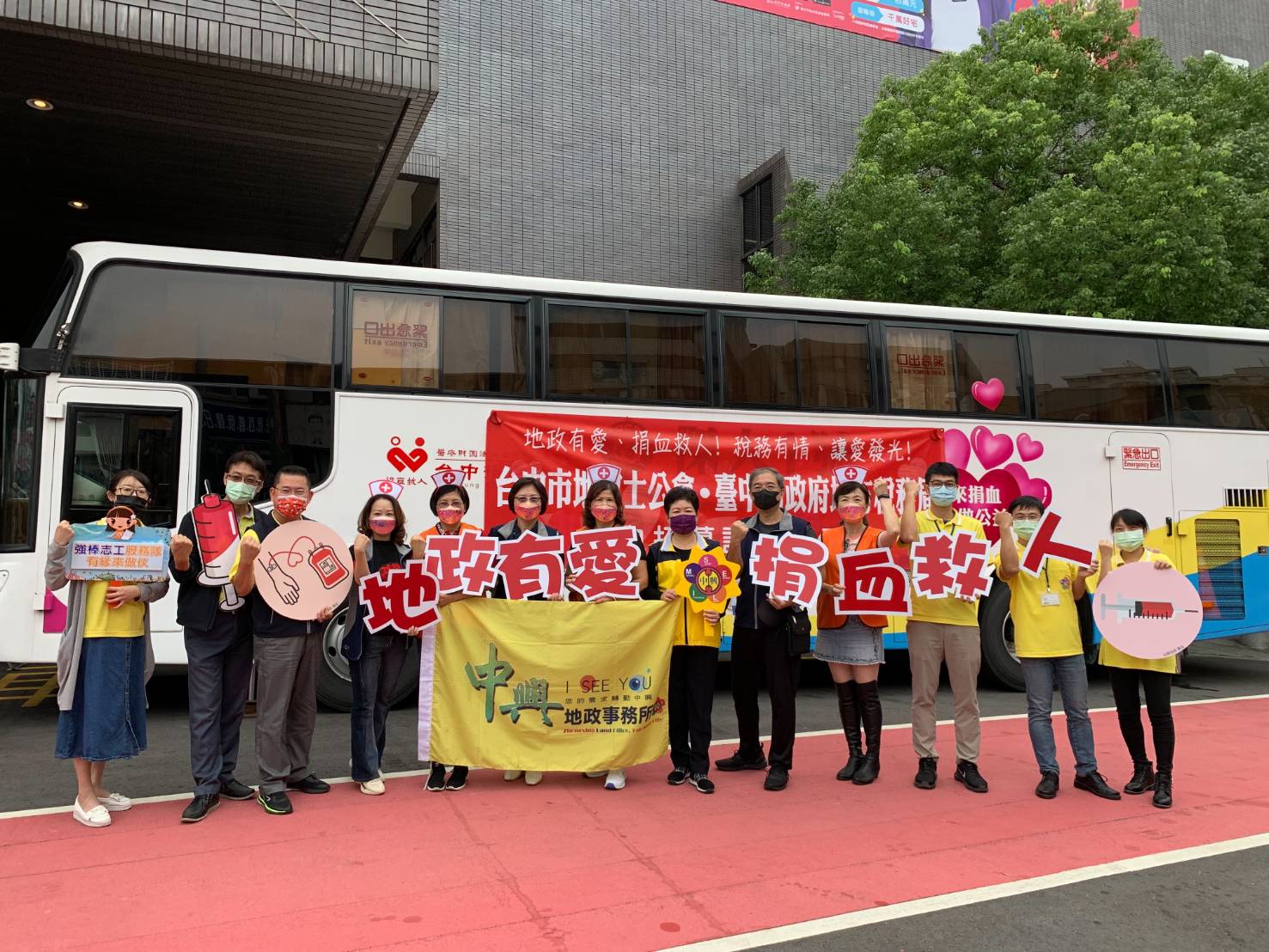 受新冠疫情影響,民眾捐血意願下降,血庫存量拉警報,為了響應「防疫不可少,捐血不能停」,中興地政事務所與台中市地政士公會、國稅局及地方稅務局等單位於今(22)日在台中市大墩文化中心舉辦「地政有愛、捐血救人」公益捐血活動,在市民踴躍響應下,捐血達到百袋,有效疏解血庫壓力。