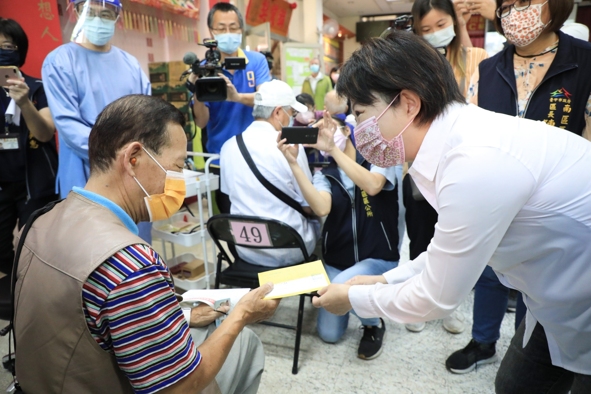 盧市長今日在民政局長吳世瑋、衛生局副局長邱惠慈、南區區長陳佩玉及當地里長陪同下,逐一了解接種流程,包括入口處、量體溫、填寫資料區、報到及掛號區、注射留觀區等,市議員李中也親自到場,關心民眾接種情形。(10/27*18)*民政局