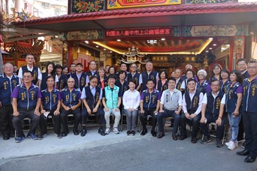 台中市上公館福德宮主祀福德正神,是地方信仰中心,香火鼎盛,為擴大服務信眾,去年購置三樓建物設置信徒活動中心,並於日前啟用,開放民眾休憩或辦理公益活動,凝聚地方共識。市長盧秀燕今(27)日至上公館福德宮參拜祈福,並頒贈「神威顯赫」匾額,感謝宮廟常年對地方的貢獻,並祈求土地公保佑國泰民安、風調雨順,市民都能平安健康。
