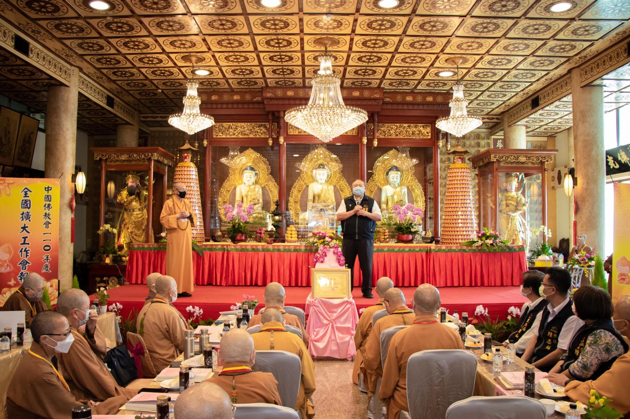 民政局說明,此次大會由台中市慈明寺承辦,現場並頒獎表揚捐助防疫物資、辦理仁王護國法會及為台灣祈雨的萬緣護國息災法等單位,同時進行大會一年一度會務討論,集結全國佛教團體群策群力,發揮安定人心、關懷社會的力量,共創全民福祉。(10/28*18)*民政局