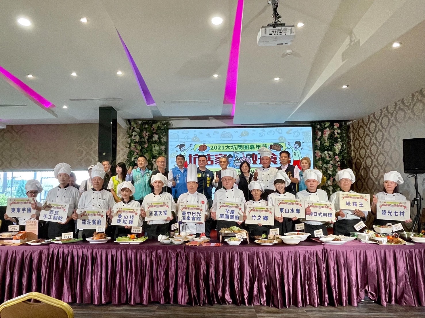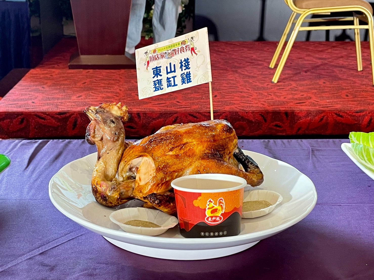 台中市大坑商圈今(3)日於今年入選必比登推介名單的「東山棧甕缸雞」餐廳,舉辦2021大坑嘉年華「坑店家好食券」開幕活動,再現大坑經典美食。市府經濟發展局表示,大坑嘉年華千人辦桌宴自95年舉辦以來,已成為大坑最經典的特色活動,每年開放預訂皆秒訂完售,今年因疫情改以販售3,600元、價值6,000元的「坑店家好食券」,今日下午開始限量販售,商品熱賣已所剩不多,請民眾把握機會。