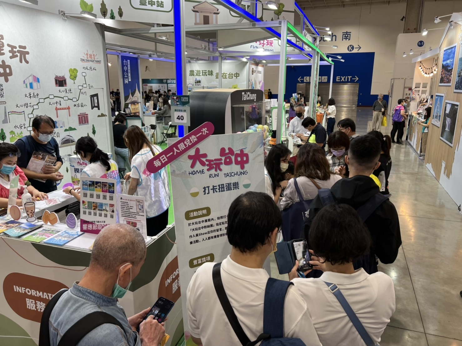 為期4天在台北南港展覽館的「2021 ITF台北國際旅展」將於明(8)日結束,台中市政府觀光旅遊局力邀民眾把握明日最後搶優惠的機會蒞臨台中館。台中館以台中捷運為主題設置的「捷運扭蛋區」在旅展期間大排長龍,結合市府農業局休閒農業元素的水果怪獸「阿尼搭捷運區」,成功吸引眾多民眾目光,此外,在台中館消費還可兌換抽獎券,現場氣氛熱烈。