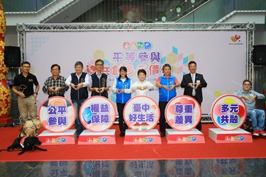 社會局長彭懷真說明,社會局針對不同需求的身障者,提供多項服務方案,協助身障者瞭解自我價值,活出獨一無二的生命。今年身障月系列活動,以「平等參與 共創多元價值」為主題,包含身障者歌唱比賽、身障萬花筒影片徵選、線上有獎票選及直播等。