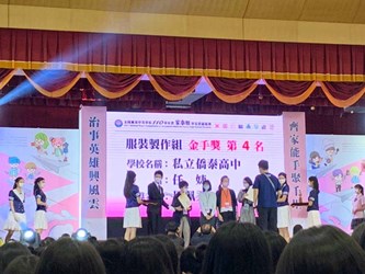 僑泰高中榮獲服裝製作組金手獎全國第四名的任婕同學表示,只要丙級做到熟透、能活用,什麼題目都難不倒,謝謝指導老師周佩柔不厭其煩地指導與陪伴,也感謝僑泰高中提供良好的訓練環境,讓他安心訓練。