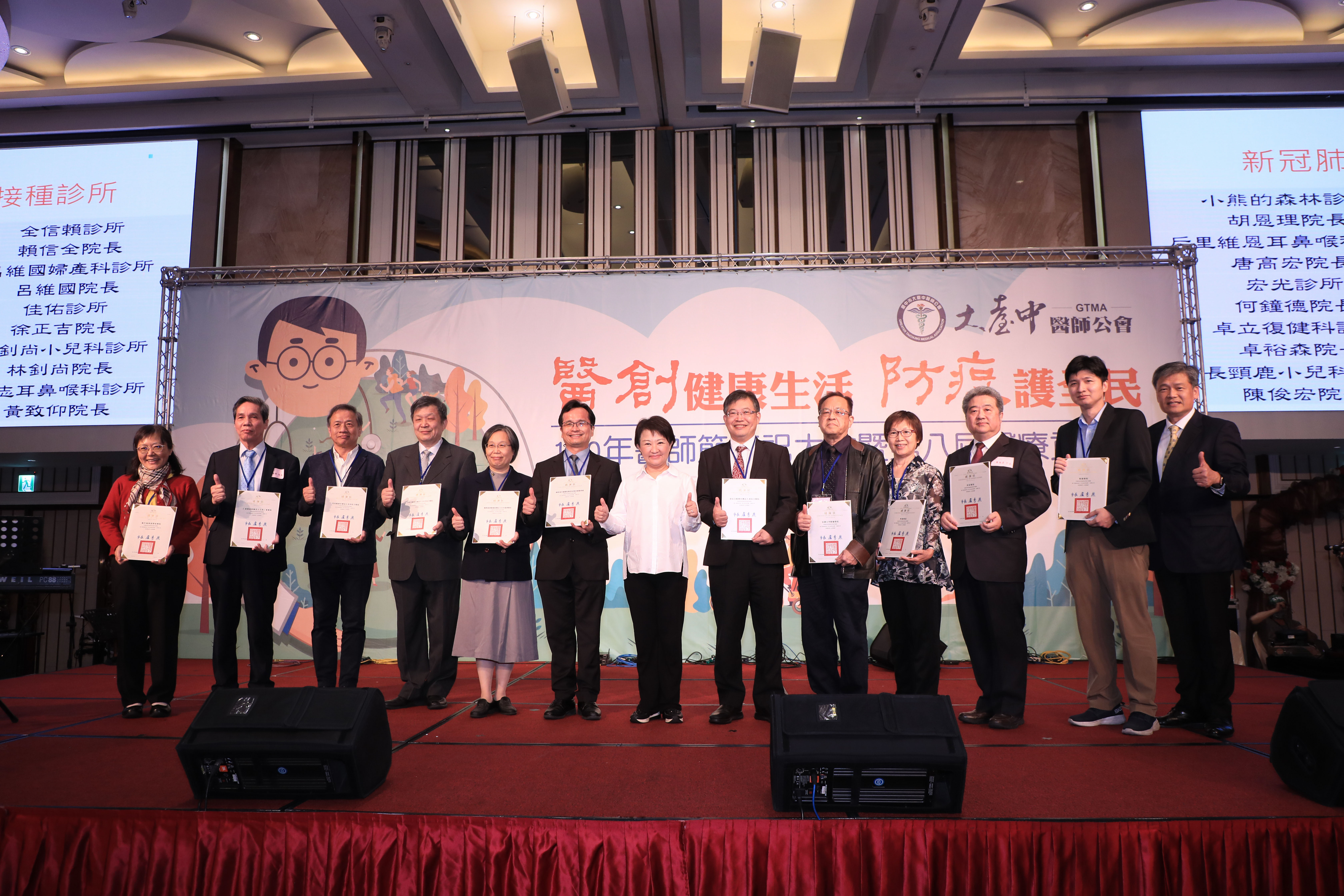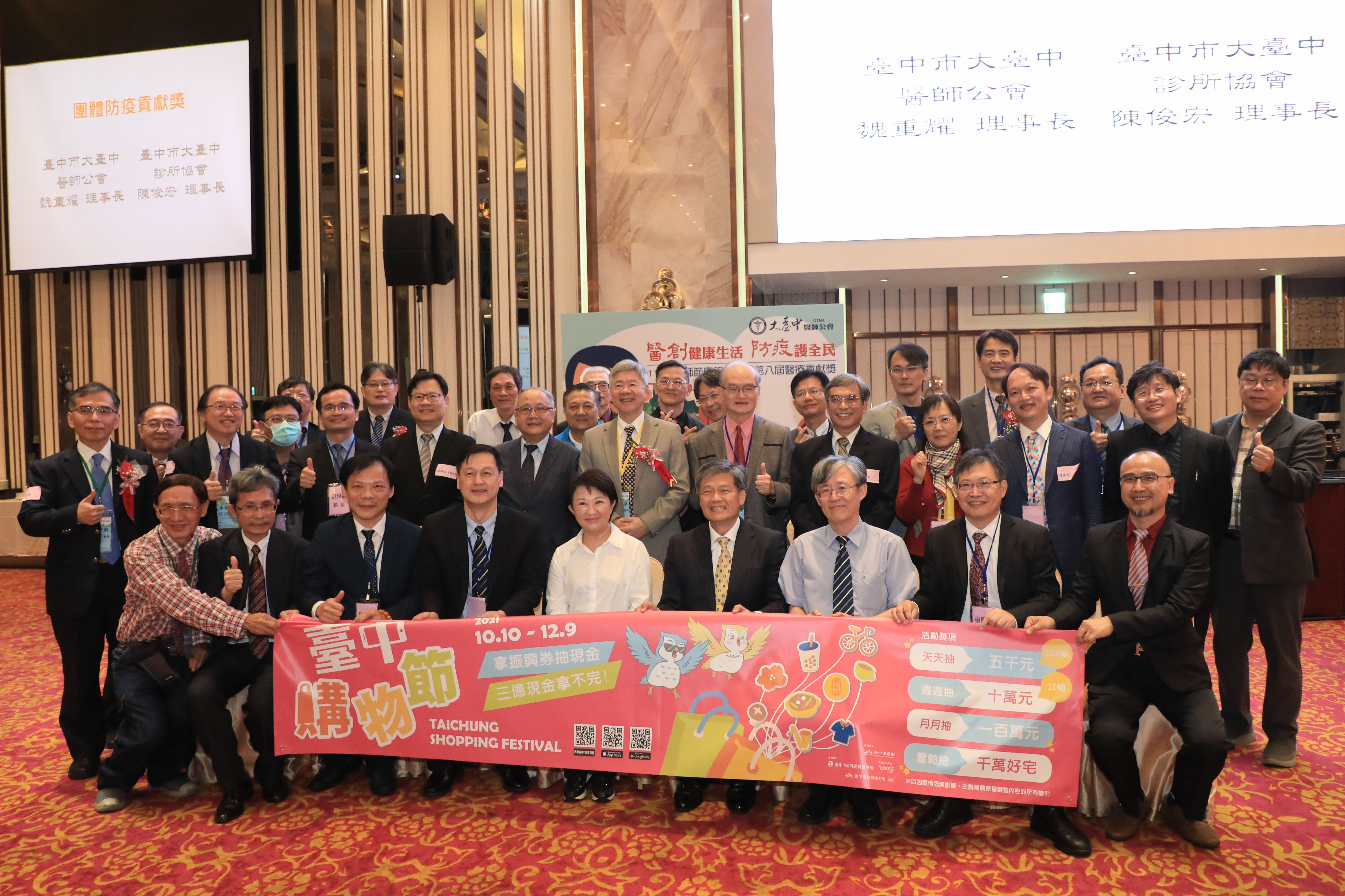 1112日為一年一度的醫師節,為感謝台中市醫療院所於疫情期間不辭辛勞、犧牲奉獻,台中市醫師公會及台中市大台中醫師公會今(21)日辦理醫療奉獻獎及醫療貢獻獎頒獎典禮,頒發今年度協助防疫工作、疫苗接種及社區快篩等衛生業務醫療院所及醫師感謝狀,市長盧秀燕到場感謝醫護人員,「有大家真好!」她表示,市府將與醫界攜手同心,維護市民安全。