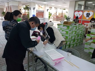 今日於陽明市政大樓發放衛生福利部印製的新版接種須知與意願書予學校