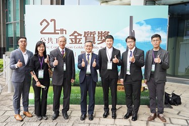 行政院公共工程委員會昨(23)日舉行第21屆公共工程金質獎頒獎典禮,台中市政府建設局以「台中都會區鐵路高架捷運化沿線5處(圓環北路、太原路、建成路、國光路、五權路)地下道填平工程-第二標(國光路、五權路)」及「全國水環境改善計畫-公93水環境教育主題園區計畫第二期工程」榮獲優等獎及佳作殊榮佳績肯定,建設局長陳大田率領建設局主管及同仁北上受獎,感謝同仁及廠商辛勞外,更期盼將台中優良公共工程品質好口碑推向國際。