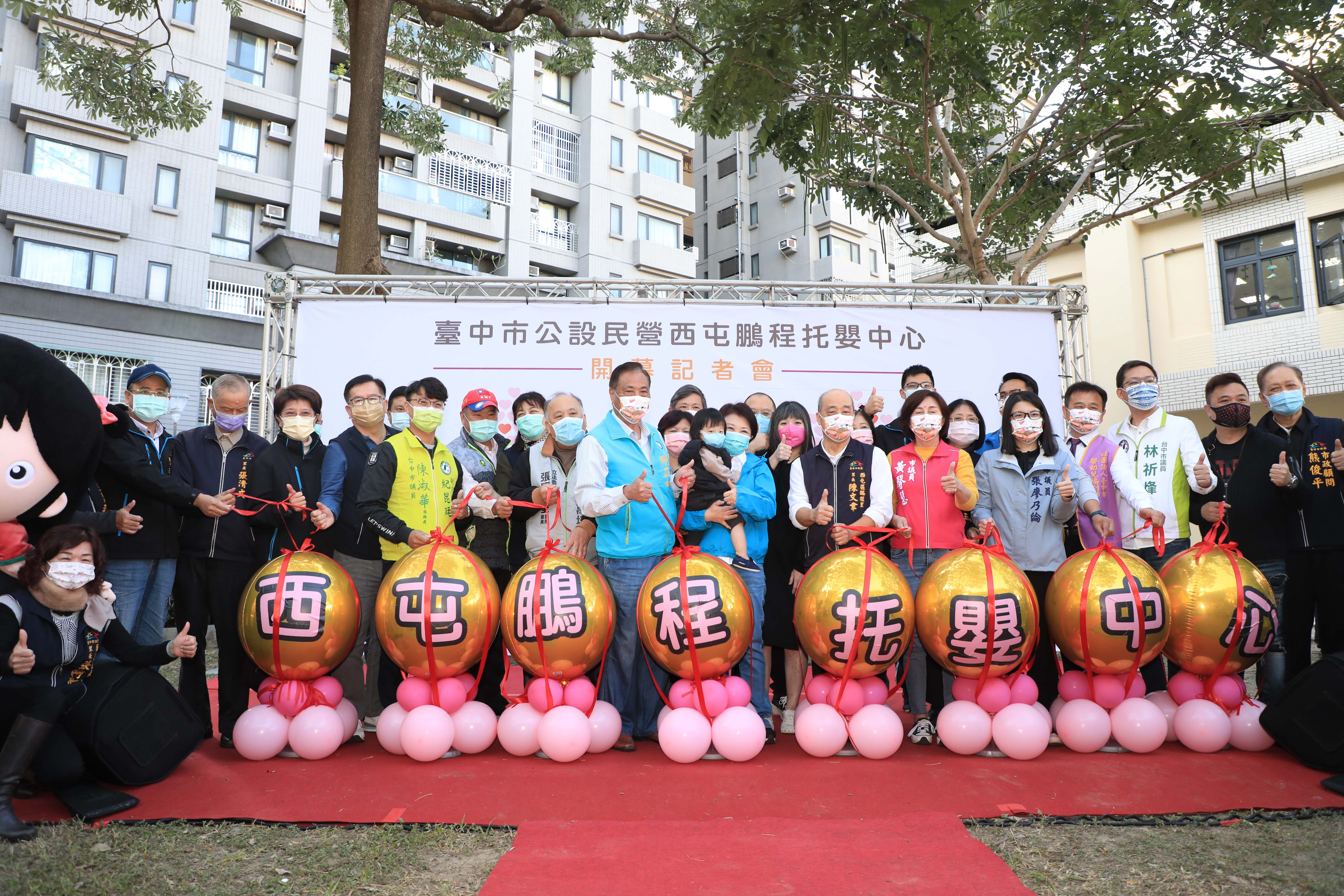 盧市長指出,西屯鵬程托嬰中心是台中市第18座公托,3年內台中市公托數量已經超越3倍增,落實公托倍增目標,市府持續編列預算,同時爭取中央補助,未來繼續努力提供安全、舒適、快樂及友善的托育環境。