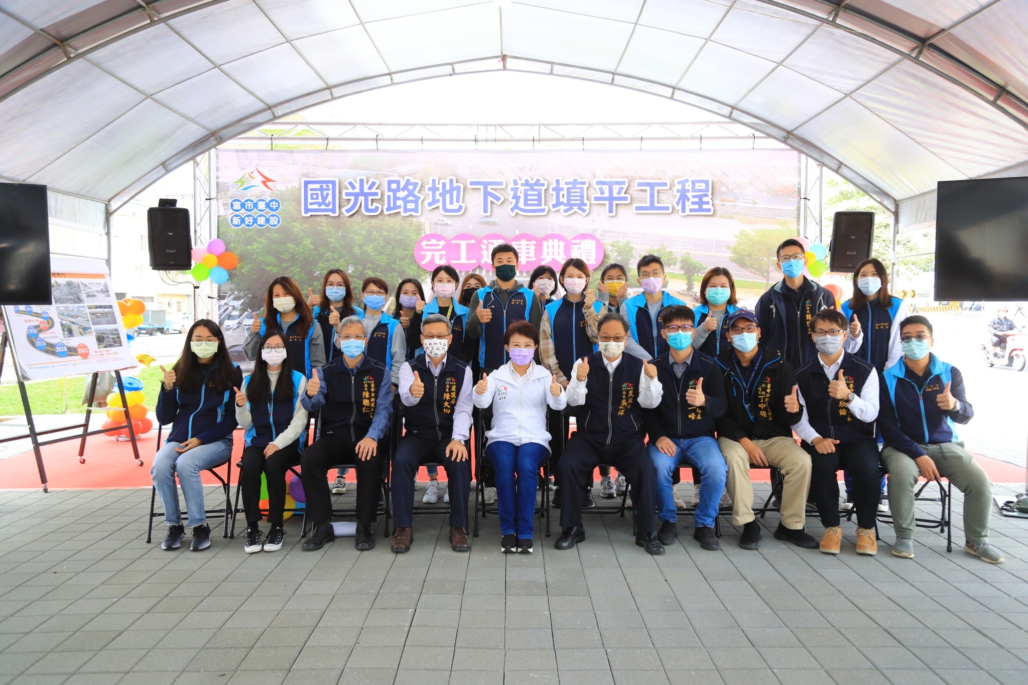 盧市長說,她時任民意代表時即積極爭取地下道填平建設,並已於上任後完成4處地下道填平作業,分別為北屯區太原路、豐原區圓環北路、東區建成路及西、南區五權路,去年3月接續辦理最後1處、也是最大的國光路地下道填平工程,原定於去年底開放全線通車、今年上半年完工,已提前約1.5個月,於去年11月15日先行開放國光路及建國南北路三線通車,更於今日提前完工。