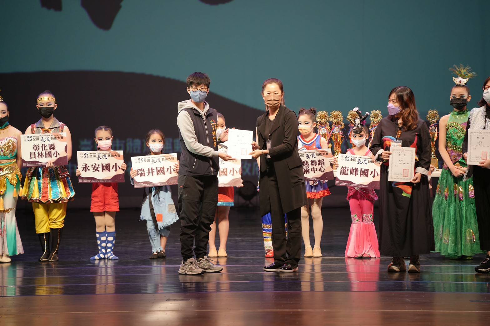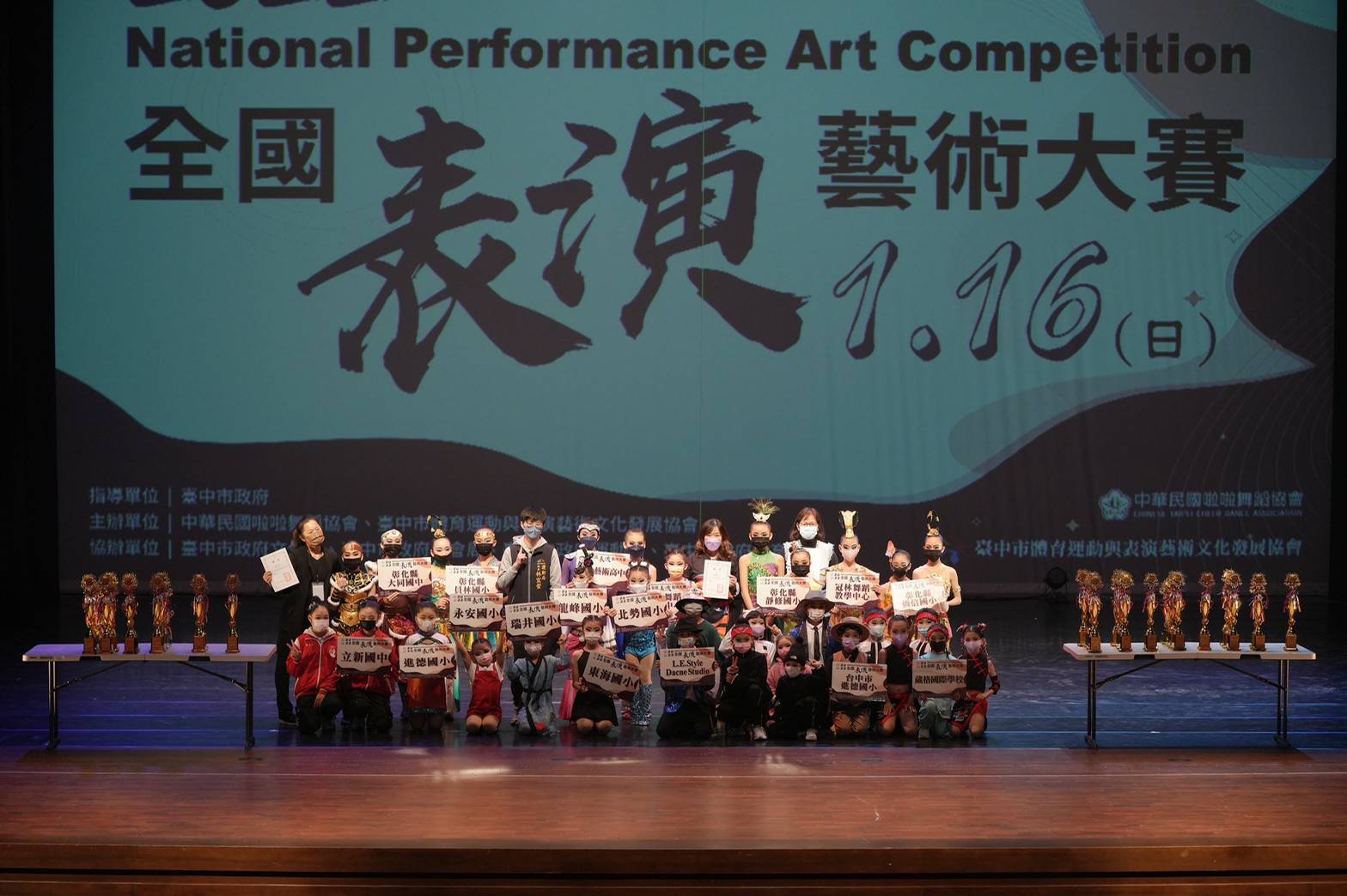 台中市政府運動局、中華民國啦啦舞蹈協會合作舉辦「2022全國表演藝術大賽」,今(16)日在屯區藝文中心熱鬧登場,賽事分舞蹈組、戲劇組和創意音樂組,吸引幼兒到大專,及社會人士參加,展開運動與表演藝術跨領域交流、發展及合作,另此次賽事因應疫情,採索票實名制開放民眾入場並落實防疫。