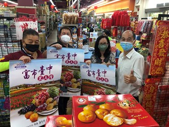 台中市柑橘品質優良,椪柑產期自去年11月開始,但受新冠肺炎疫情影響,船期塞港、缺工及原物料成本上漲,出口遭遇極大困境,市府農業局積極輔導農民團體及合作社場等,今年排除萬難順利出口椪柑共650公噸,創造新台幣逾5,000萬產值,有效穩定市場價格,提升農民收益,也將吉利象徵帶至東南亞,提供在地優質年節禮盒採購選項。