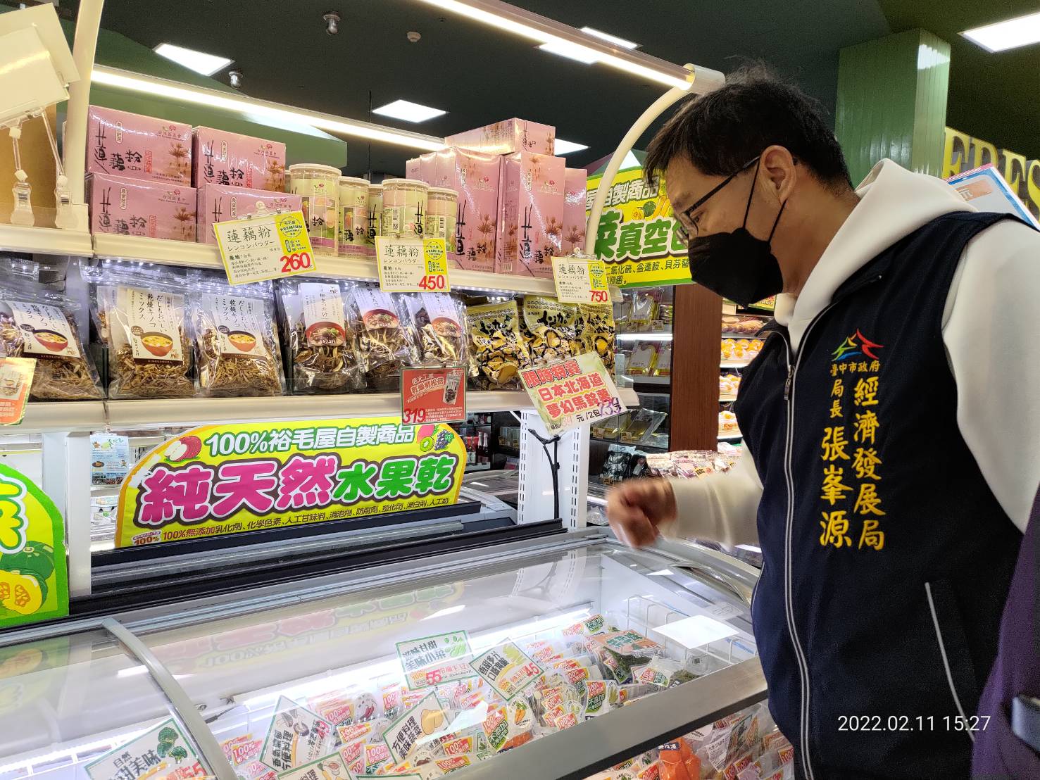 因應中央開放日本福島五縣市食品,台中市政府各局處全力整備,市府經發局長張峯源昨(11)日率隊走訪裕毛屋凱福登生鮮超市,視察日本進口水產、蔬果等產地標示情形,經查業者均已依規標示製造原產地的都、道、府、縣名,張局長也再次向業者宣導落實產地標示,協力守護市民健康。