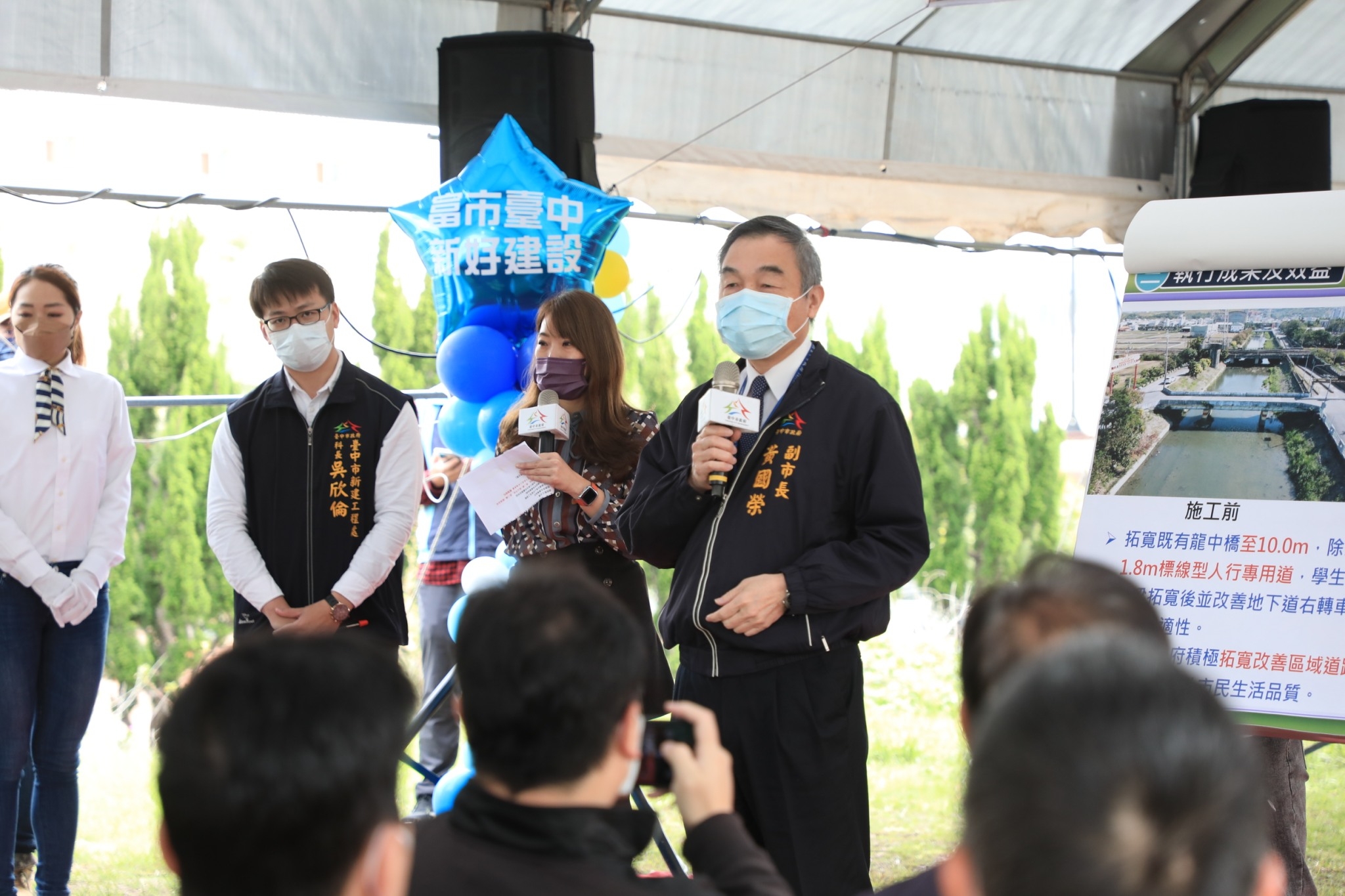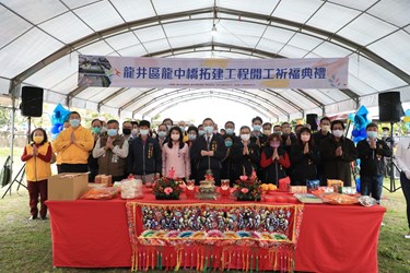 台中市龍井區龍中橋是在地重要橋梁,也是龍井國中學生重要的通學路線,建設局推動「龍井區龍中橋拓建工程」,將原本僅5公尺的橋梁拓寬至10公尺,並增設1.8公尺人行專用道,讓學童擁有專屬路權。副市長‎黃國榮今(18)日出席動土祈福典禮表示,此工程預計今年10月完工,將大幅提升用路安全性,守護在地居民。