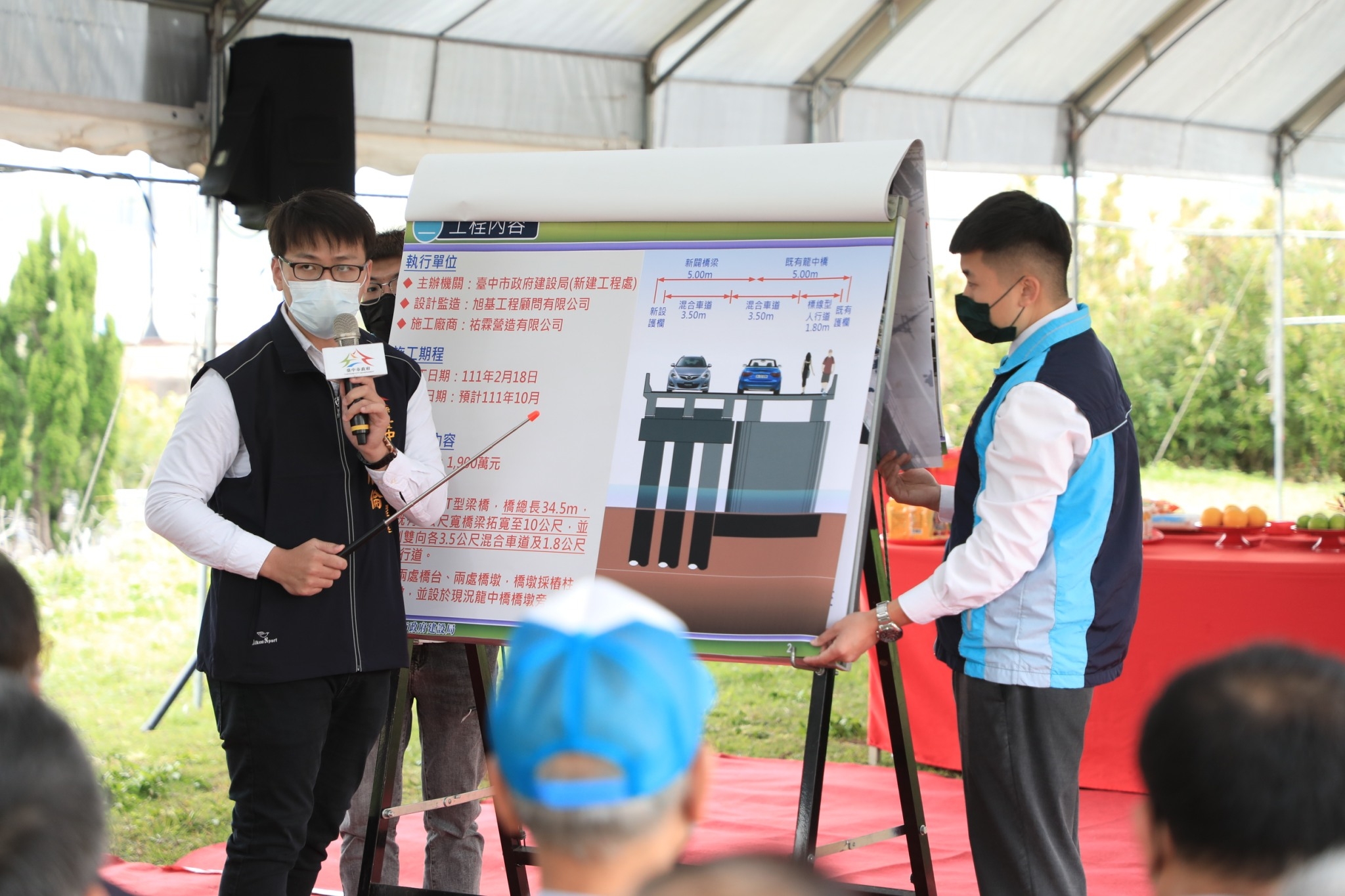 建設局長陳大田說明,此案總工程經費約1,900萬元,是龍井區民眾多年盼望,去年受疫情影響,營建物價上漲、營造業缺工缺料,歷經多次檢討及招標,建設局克服大環境因素,終於順利推動。該橋梁拓寬採樁柱式結構,不會影響既有橋梁結構,施工期間也可維持通行,減少交通影響。