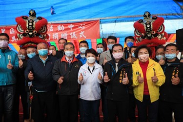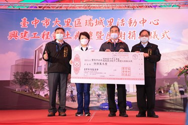 「明年中完工!」盧市長說明,瑞城里人口數約14千餘人,是大里區第一大里,原活動中心受921地震影響,結構受損無法使用,致里民多年缺乏公共活動空間,市府團隊積極協助尋覓適宜用地,幾經努力之下,國有財產署同意撥用國有土地,加上市府編列預算及動用第二預備金,今日終於開工,完成地方居民多年心願。