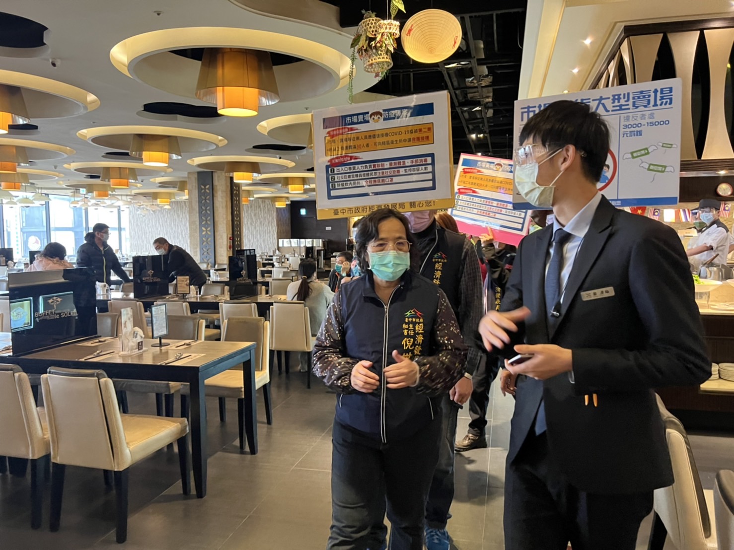 近期新冠肺炎疫情升溫,尤其清明連假期間,全國移動可能帶來更多傳播接觸機會,台中市政府經濟發展局嚴陣以待,今(2)日清明連假首日,便由主任秘書倪世齡率隊前往南屯區潮港城國際美食館,進行防疫措施宣導及查核,業者除落實顧客進場管理、用餐管理外,也積極維持用餐環境良好通風,環境清潔消毒。