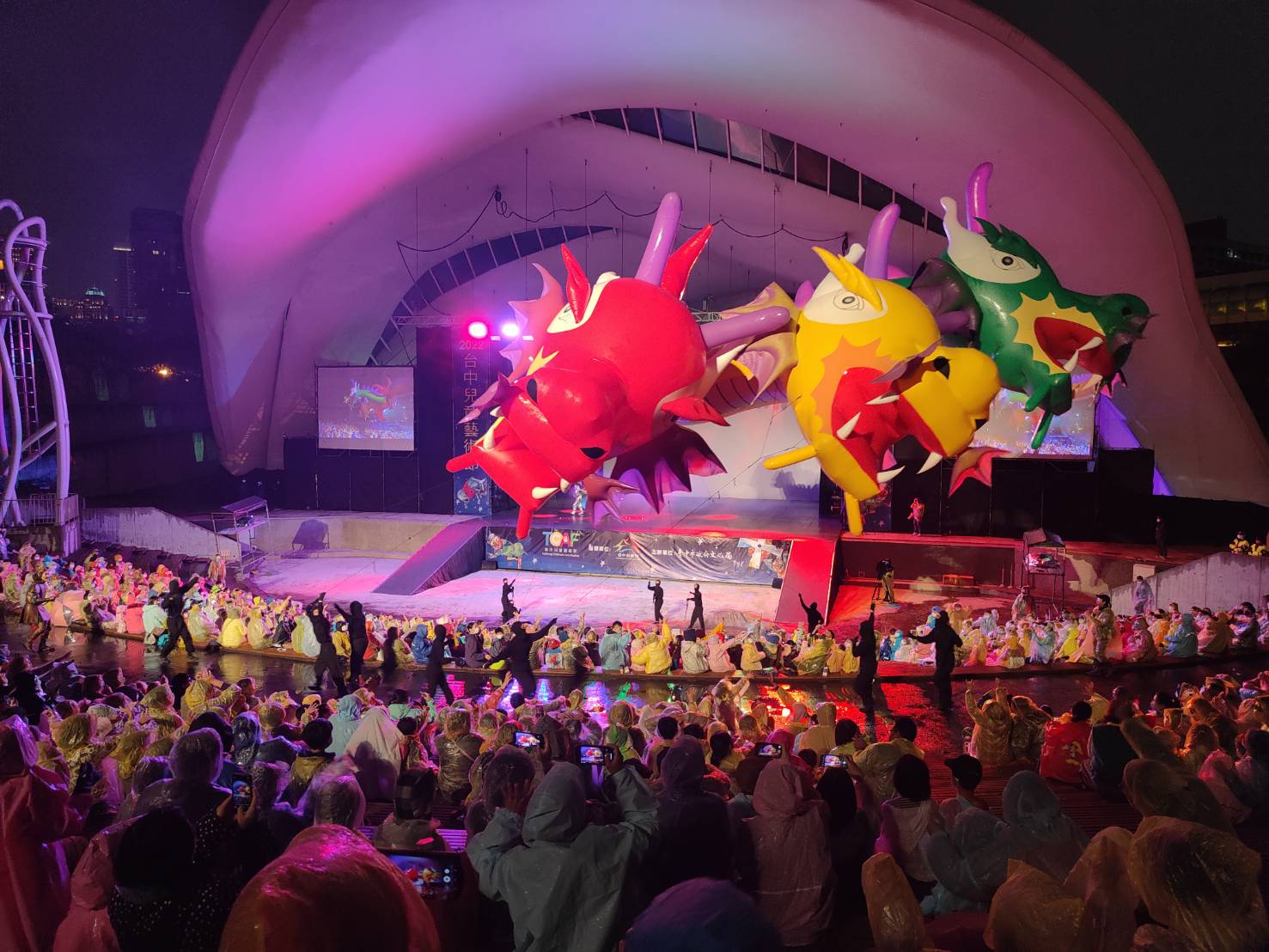 迎接歡樂兒童月,台中巿政府文化局辦理「2022台中兒童藝術節」,今(2)晚7時在圓滿戶外劇場邀請紙風車劇團帶來經典節目《唐吉軻德冒險故事-銀河天馬》,滿場觀眾熱情不受雨天影響,並且在工作人員引導下遵守防疫規定觀賞演出。副市長黃國榮代表市長盧秀燕祝福現場大小觀眾「兒童節快樂」,並陪伴民眾全程欣賞表演,跟著英勇騎士「唐吉軻德」經歷一場高潮迭起的冒險旅程,度過歡樂的週末夜晚。