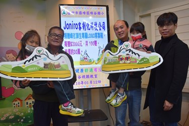 不僅於此,經發局說明,JONIRO行銷也獨具一格,獨創廣告宣傳車全國走透透商業模式,深入社區到府服務,設計出屬於在地或團體獨有的文化特色,至今和多家上市公司如展宇科技合作團體鞋,也與太平天元龍鳳宮、慈惠堂等宮廟團體,以及神岡高中籃球隊、上石國小、頭家國小、峰谷國小專案合作,展現台灣傳統宮廟文化之美,也為偏鄉教師及經濟弱勢的孩童打造安全舒適的專屬鞋款,為社會盡一份心力。