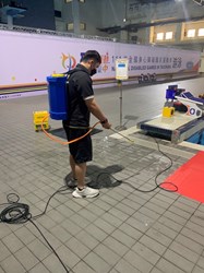 確實執行量測體溫、手部消毒及實聯制,管制人員進出;各場館清潔消毒頻率加強;競賽場僅上場比賽時間選手可免戴口罩,其餘時間與人員一律全程佩戴口罩;頒獎及受獎者一律全程佩戴口罩,獎牌及獎品由受獎人自行佩掛。