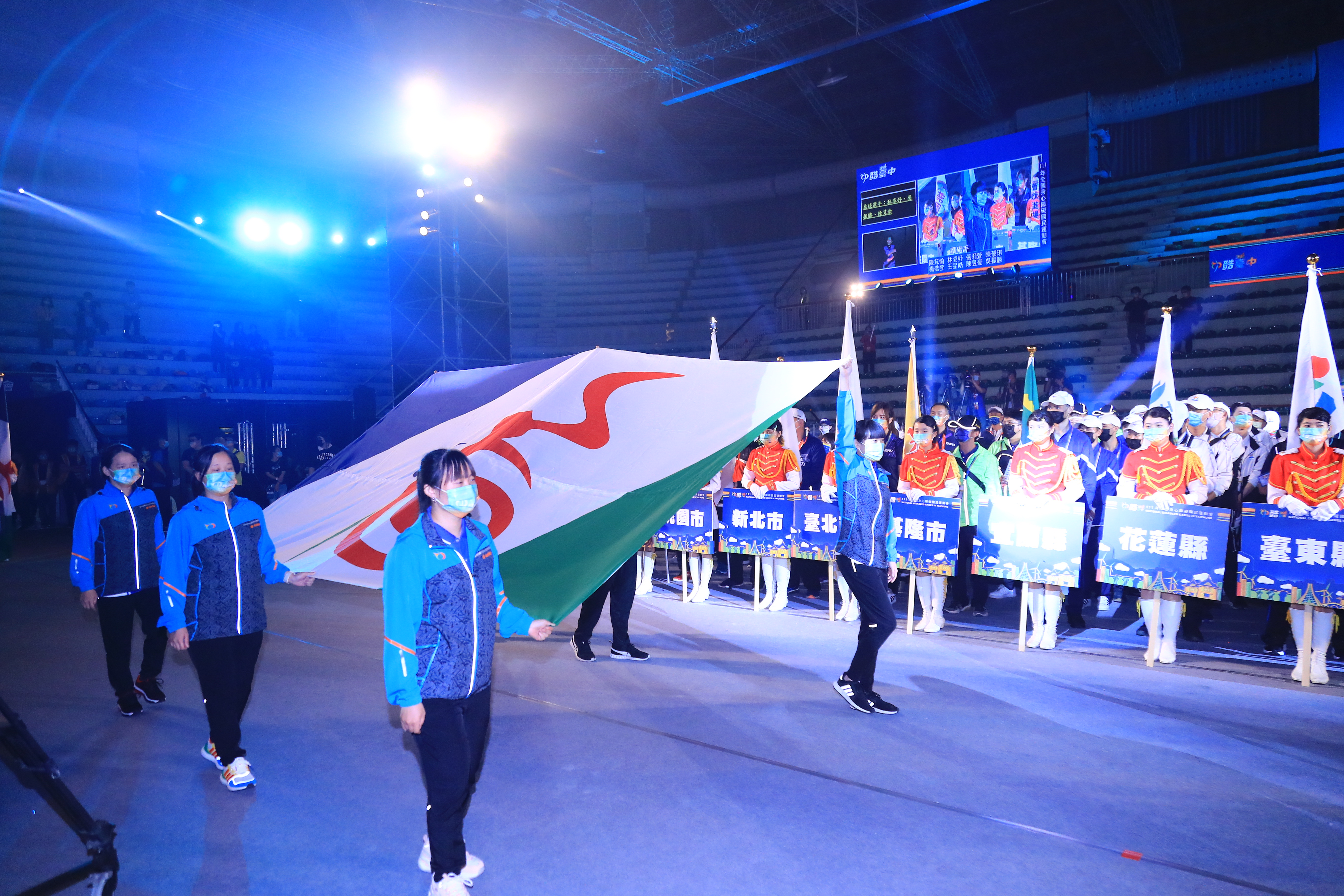 運動局說明,今日大會會旗由會吉祥物「樂虎」、「來虎」引領進場,並由八位優秀運動員擔任護旗手,包含桌球選手林姿妤、吳振勝、陳芃渝;游泳選手陳郁琪、王星皓;保齡球選手楊喬登、張羽萱;及田徑選手陳昱豪,為全國民眾展現大會會旗所傳達的昂首闊步精神。