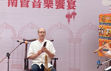 陳局長表示,「合和藝苑」共帶來8首曲目,包括演出董永憶起與七仙女約定的〈白雲飄渺〉、梁山伯與祝英台於樓台互訴衷情的〈汝停查〉,以及范仲淹抒發鄕思旅愁的〈碧雲天〉等,樂曲優雅雋永,耐人尋味。特別引人注目的是,舞台上參與表演者有德國籍團員胡若安,他2009年時參加吳老師的講座後便愛上南管,追隨吳老師至今,並經常參與樂團表演。雖然他完全不懂泉州話,仍努力以羅馬拼音記憶背誦,演出時的精采唱腔和忘我神采,讓現場民眾讚賞不已。