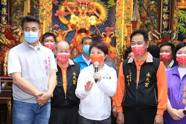 盧市長表示,永天宮主祀天上聖母,是當地重要的信仰中心,感謝主任委員謝咏霖帶領團隊為原年久失修的廟宇進行重建,今日特別頒贈「保境佑民」匾額,希望讓地方看見媽祖的慈悲及神威;近期疫情升溫,相信媽祖會保佑國泰民安,也提醒市民落實防疫別輕忽;另今日是媽祖的生日,祈佑媽祖保濟安明,祝福地方人民身心健康。
