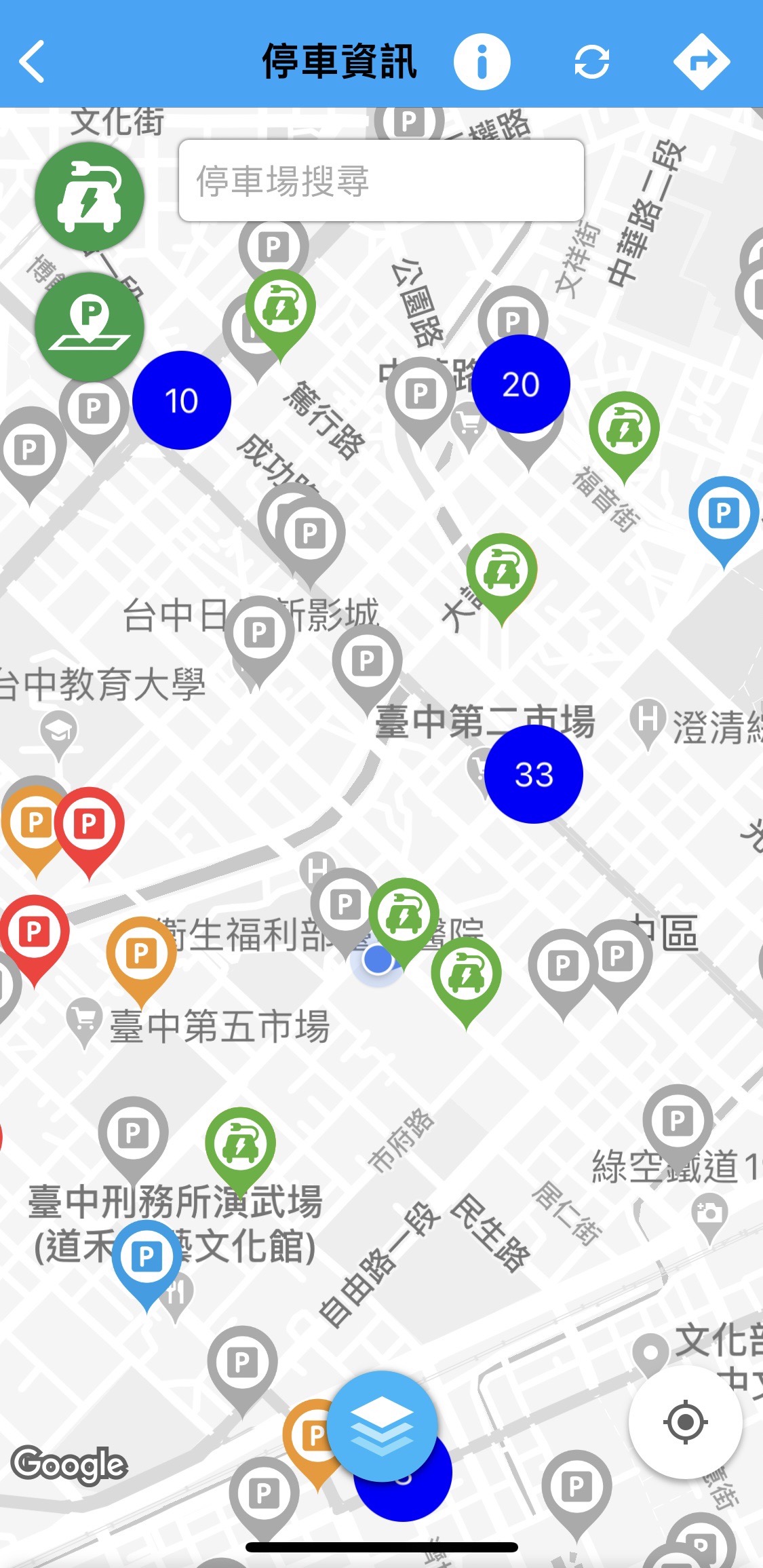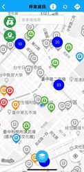 台中市政府交通局表示,為方便民眾停車,已將路邊車格資訊整合至「臺中交通網APP」,透過APP可即時查詢累進、差別費率路邊停車空位資訊,除以顏色顯示車格狀態,更加強路邊親子車格、身障車格、卸貨車格等特殊車格辨識,讓民眾直觀了解車格空位及特殊車格地點,還可導航至目標車格,有效減少民眾找車位時間。
