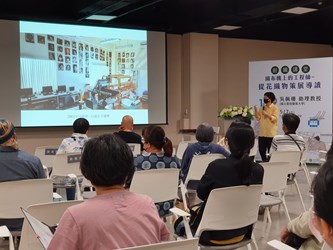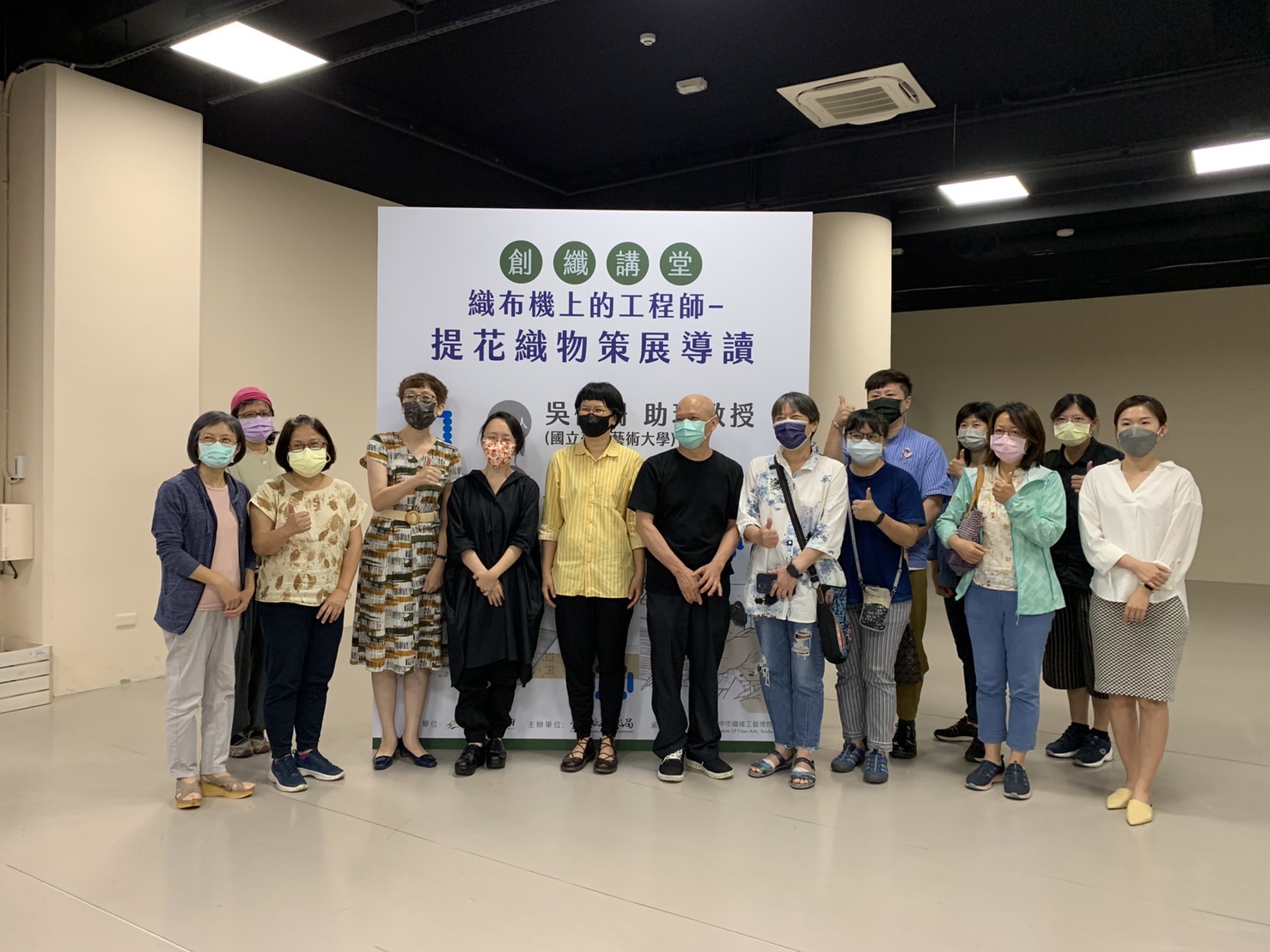 今日講座,包含參展人邱敬婷、台中市工藝師陳如萍、台灣四季藍研究會賴美智、台灣染織文化創意協會黃英明、新北市烏來區原住民編織協會總幹事范月華、樑露工房陳俊位與潘瓊會、纖維工藝師張可宸均到場參與。
