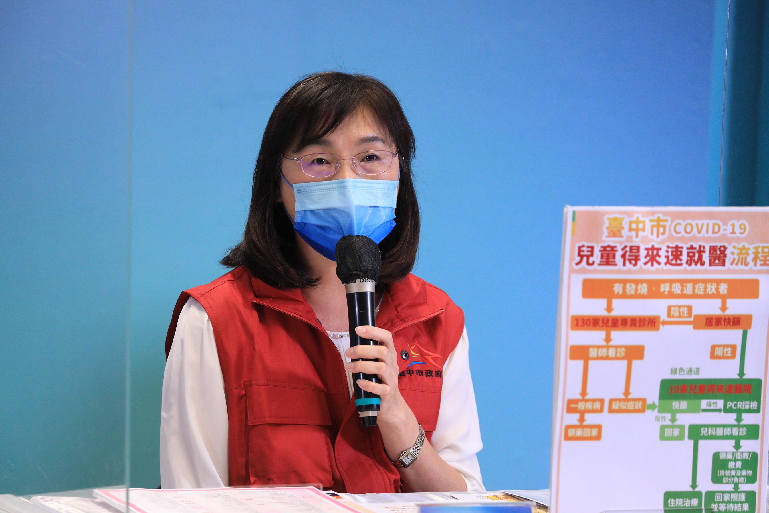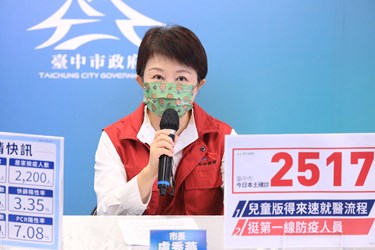 全國今(7)日本土確診新增4萬6377例,台中市本土個案新增2517例,其中764位確診個案為接觸者發病,校園群聚佔136例,職場群聚佔172例,家庭朋友群聚佔456例,其餘持續調查中。市長盧秀燕今日於防疫記者會表示,「兒童得來速」就醫機制明日起上線,兒童若居家快篩陽,可到台中10家兒童得來速醫院進行PCR採檢,透過綠色通道安排兒科醫師看診,盡速確認後續照護事宜。