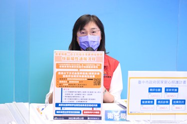 衛生局副局長邱惠慈說明,今天是中央通報居家隔離、自主防疫、居家檢疫這「三類對象快篩陽性,經醫事人員判定確診」首日,其通報流程為「3天居家隔離及4天自主防疫」或「7天居家檢疫」期間使用家用快篩試劑結果陽性後,有3種方法可找到醫師遠距(視訊)診療協助評估是否確診,一為透過衛生局官網查詢台中市視訊診療院所名單,二為使用「健康益友」APP、健保快易通APP查詢,三為撥打1999專線,由專人提供可執行視訊診療院所名單。