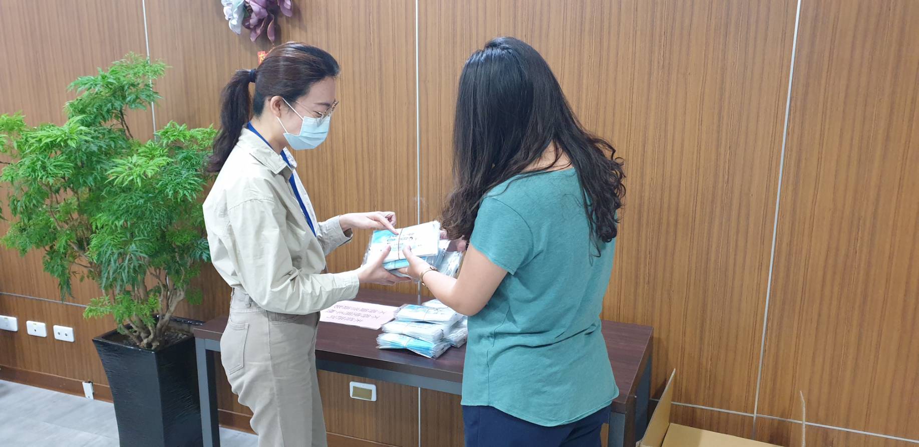 因應疫情升溫,台中市政府各機關現有超過2千多名擔任安心即時上工人員,協助公務機關執行環境消毒等防疫工作。為提升進用人員防疫保護措施,勞工局備好30萬片口罩及3千個酒精噴瓶發送給進用人員,並定期由專案管理人員電訪關懷其上工情形,為台中市防疫生力軍增加防疫能量。