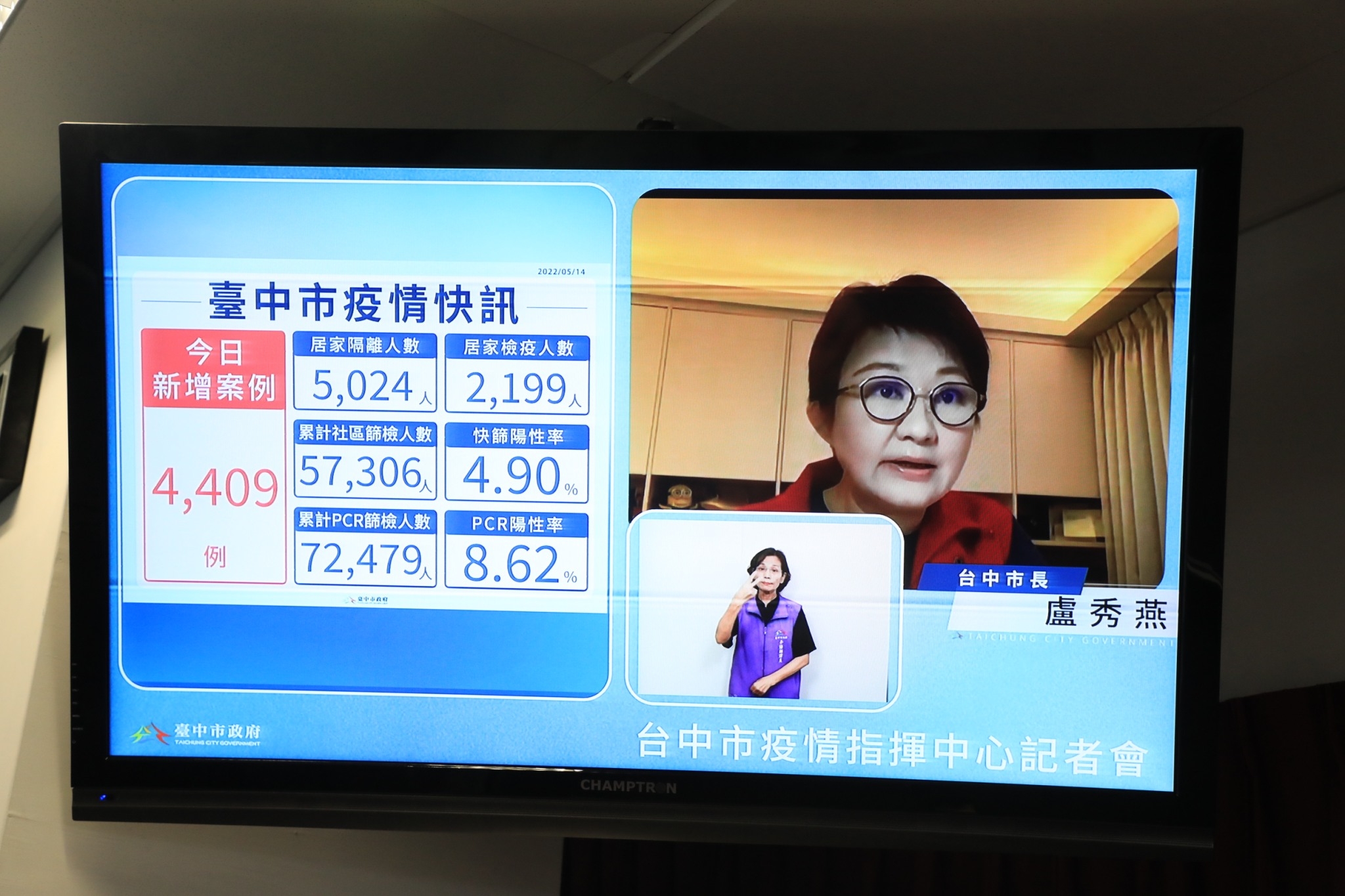 全國今(14)日本土確診新增6萬3964例,台中市本土個案新增4409例,市長盧秀燕今日於防疫線上記者會表示,台中市今日再度開設40多處快打站,截至目前,台中市接種第一劑疫苗人數超過252萬3102人,覆蓋率破9成,較全國平均約8成5高,感謝市民配合增進台中整體防護力。此外,台中市「兒童就醫得來速」加入國軍台中總醫院,達到11家大型綜合醫院規模,持續服務全市18歲以下青少年與幼童,量能更加擴大。