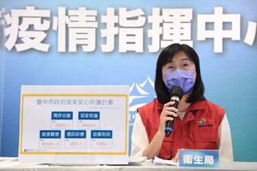 有關台中市居家照護統計,盧市長指出,截至今日上午10時,累積有2萬8101位進行評估,其中2萬4955位(88.8%)已收案居家照護,累計健康關懷9萬3338人次,其中視訊診察2615人、送藥到府1046人、解除隔離8015人。醫療量能部分,新冠肺炎專責病床數共942床,其中已使用數為394床(41.83%)、可使用數為548床(58.17%)。