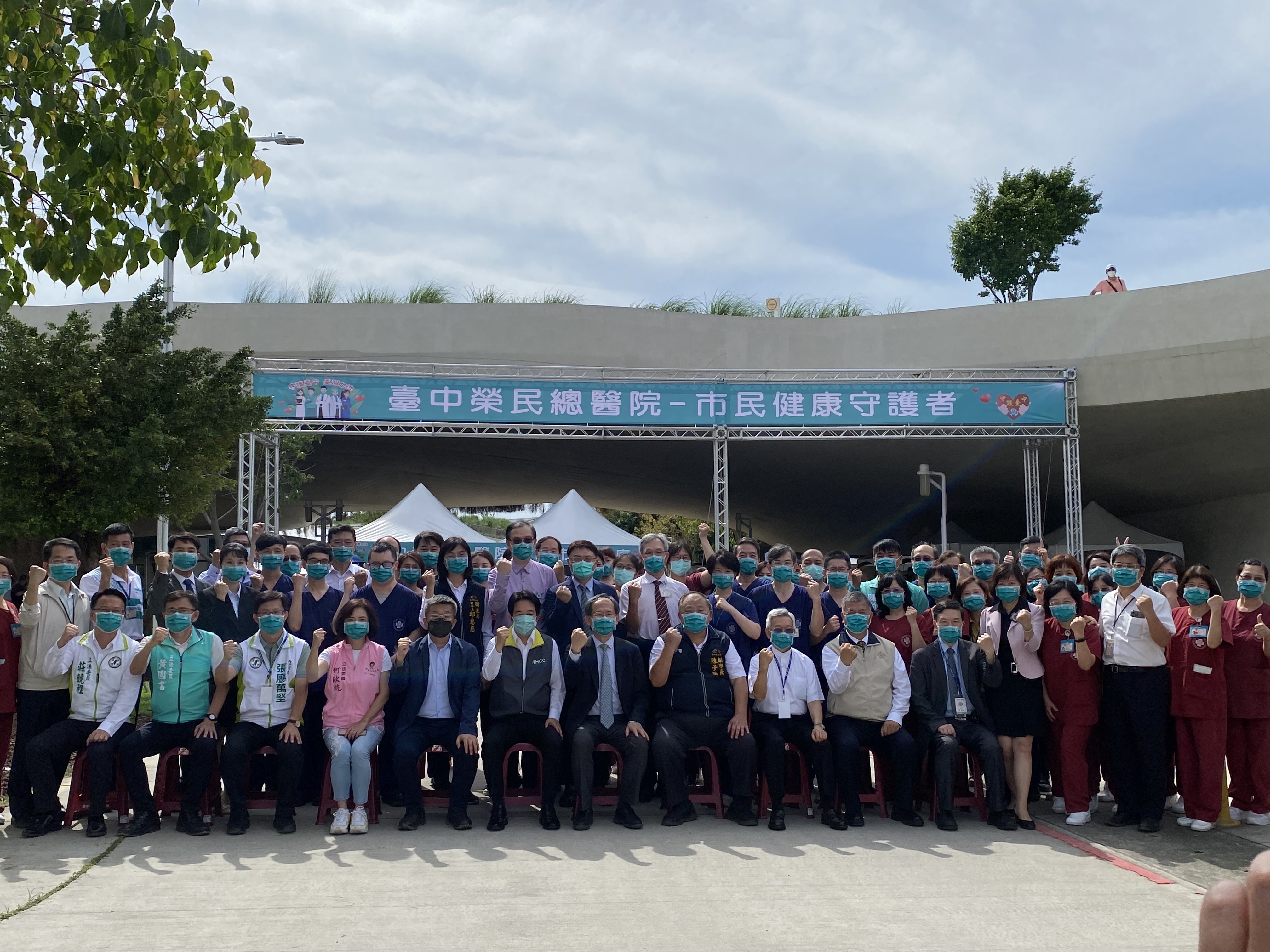 陳副市長也代表盧市長感謝陳院長率領的台中榮總醫護人員與主管,每日支援30至40名人員至中央公園站提供採檢、看診、領藥服務,市府相關局處每日也安排支援同仁協助現場引導與分流人潮。