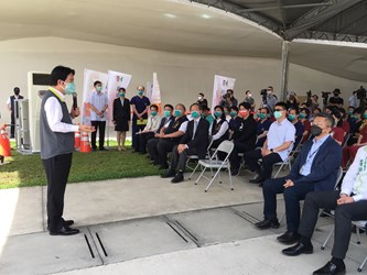 賴副總統表示,台中市透過多箭齊發各種接種政策,疫苗接種第一劑涵蓋率達92.31%、第二劑達85.87%、第三劑達68.13%的涵蓋率,均高於全國,在此代表蔡總統感謝台中市長盧秀燕帶領優質團隊,規劃多項的防疫作為,也看到醫院及診所一同防疫,更感謝企業捐贈及支持,對台中有信心。