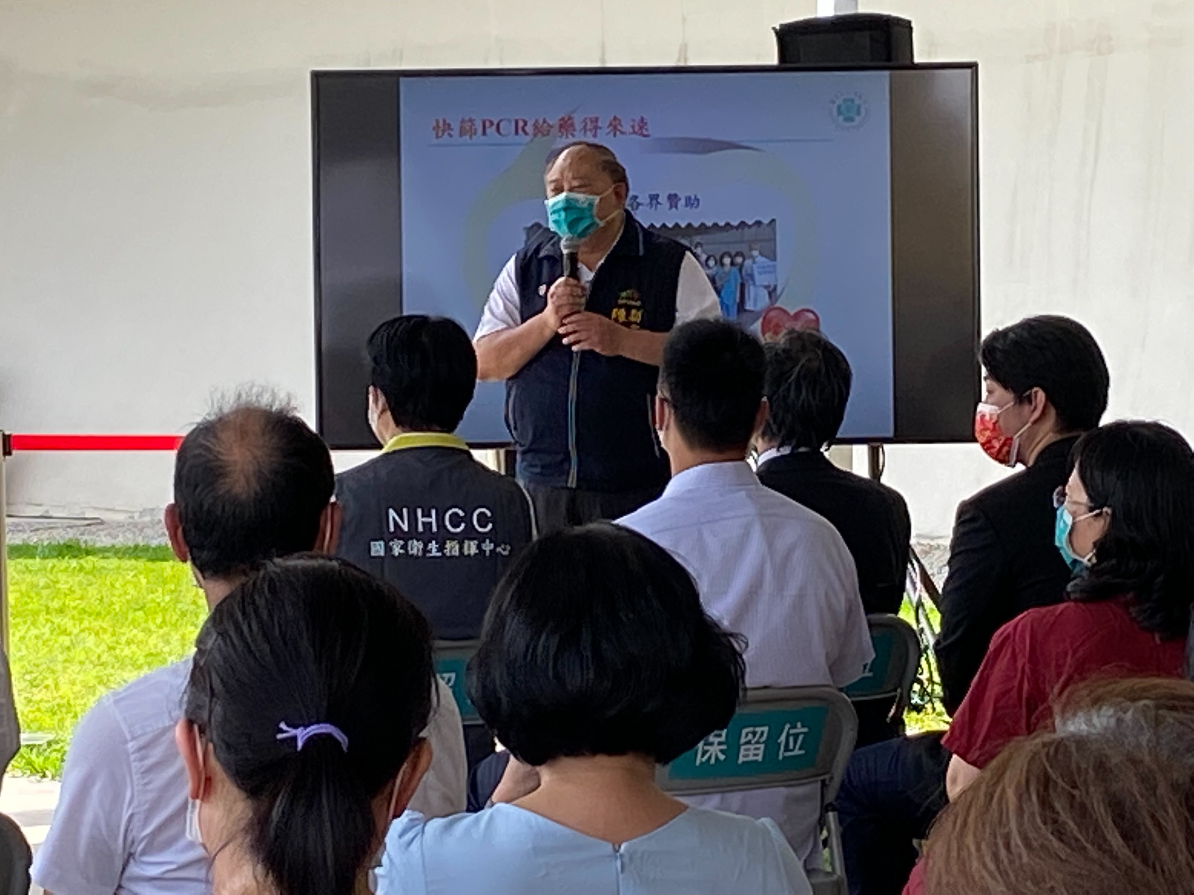 今日視察,包含副總統賴清德、副市長陳子敬、市府衛生局副局長邱惠慈、篩檢站副指揮官參議陳麗珠、輔導會副主委吳志揚、就醫處副處長陳延芳,台中榮總院長陳適安、副院長傅雲慶、副院長李政鴻、副院長吳杰亮、主任秘書姚鈺,以及立法院副院長蔡其昌、立法委員莊競程、何欣純、張廖萬堅、黃國書及台中市醫師公會理事長陳文侯等相關人員均到場慰問防疫人員。(5/29*16)*衛生局