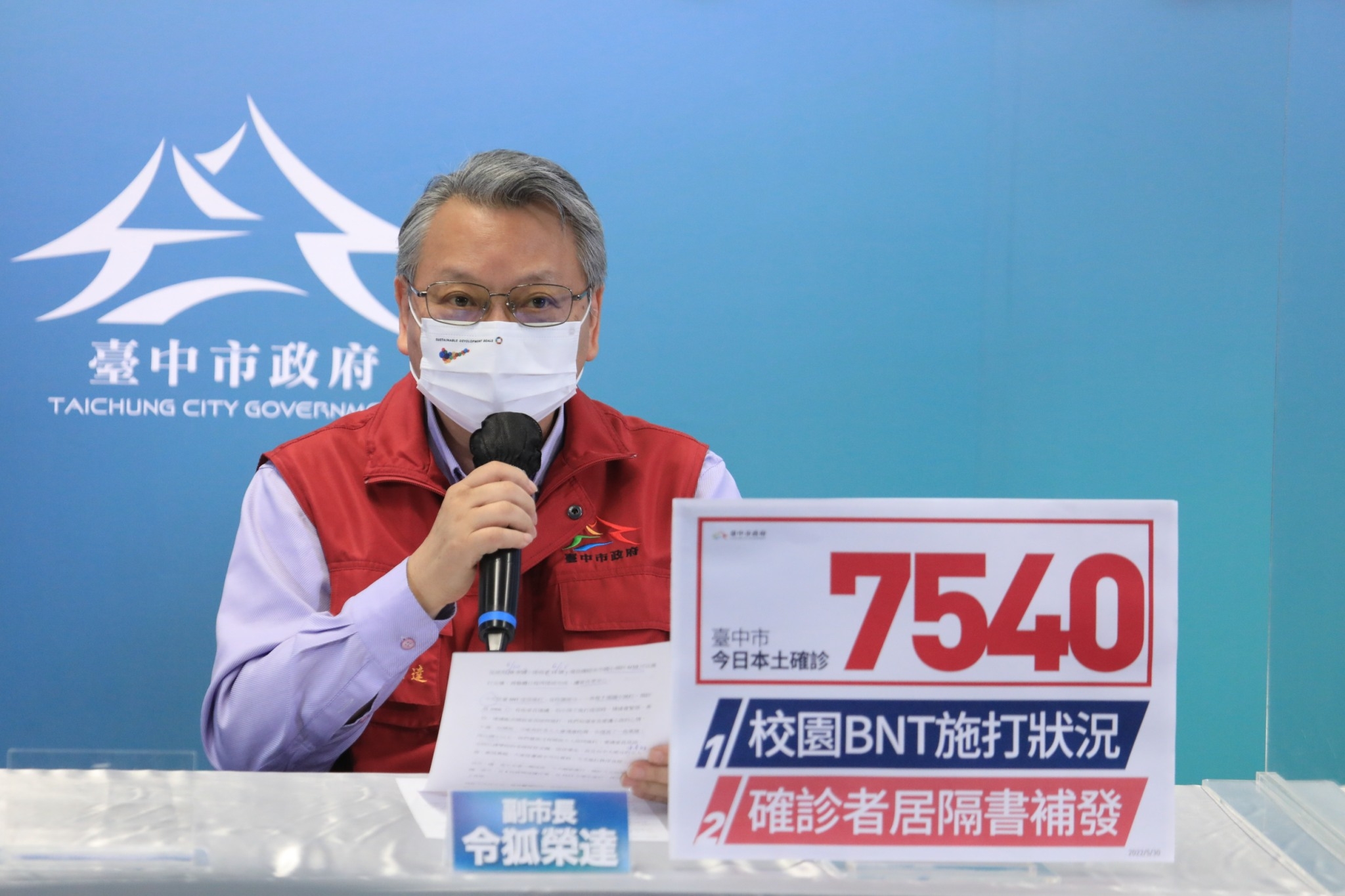 全國今(30)日本土確診新增60042例,台中市新增7540例本土個案。副市長令狐榮達今日主持防疫線上記者會表示,市府加速為學生施打疫苗,已請校方跟醫療院所媒合,讓施打期程再提前,全市國小預計610日可施打完畢,讓家長更安心;另相較台中曾單日確診數破萬,今日少了約2500例,是否為假日效應或準備進入疫情高原期,市府持續觀察,提醒民眾務必落實防疫。